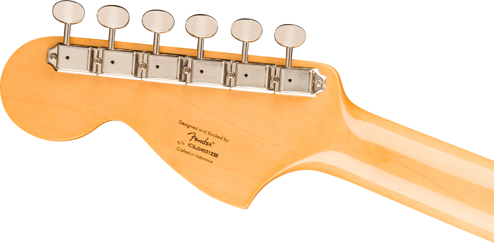 The Squier Classic Vibe '70s Stratocaster HT HSS in Mocha captures the bold character of 1970s-era Strats with a modern twist. Its HSS pickup configuration features a Fender Designed alnico humbucker in the bridge for added power, alongside two vintage-voiced single-coils for tonal versatility. The hardtail bridge with string-through-body design delivers solid tuning stability and resonance, while the large '70s-style headstock and vintage-tinted neck bring the retro vibe to life. A 3-ply black pickguard completes the rich Mocha aesthetic.