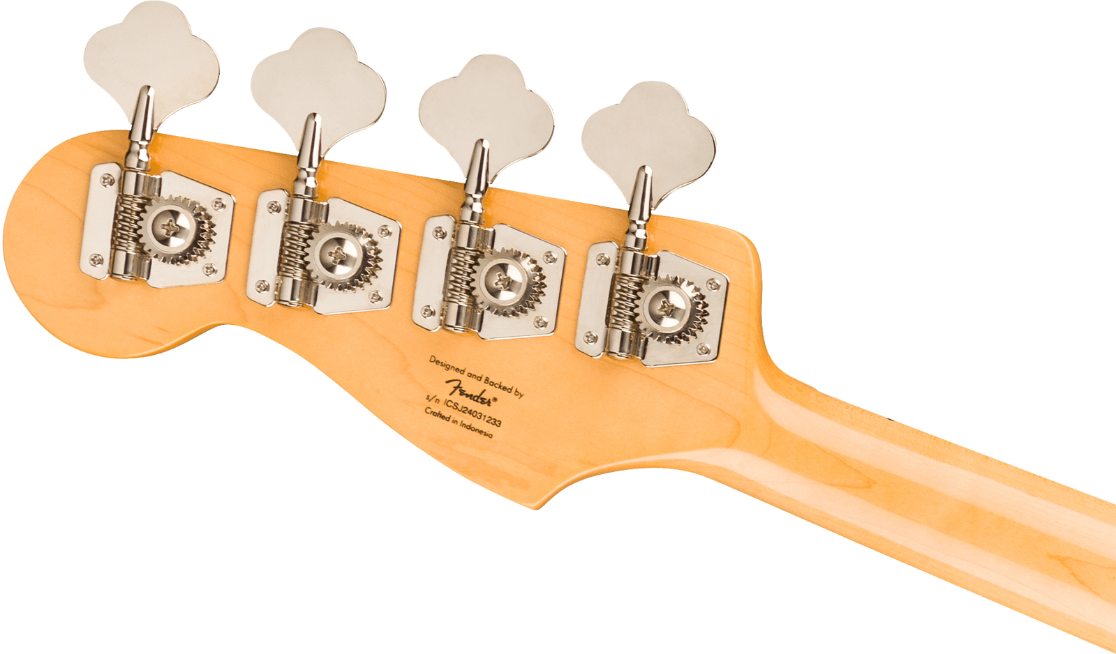 The Squier Classic Vibe Active '70s Jazz Bass in Mocha channels vintage 1970s style with modern tonal flexibility. Equipped with Fender Designed alnico Noiseless pickups and a powerful onboard 9V preamp, it delivers punchy, hum-free tone with active EQ for bass, treble, pickup blend, and master volume. A mini toggle lets you switch between active and passive operation. The HiMass bridge enhances resonance and sustain, while the bound maple fingerboard with block inlays and vintage-tinted gloss neck adds an authentic retro vibe.