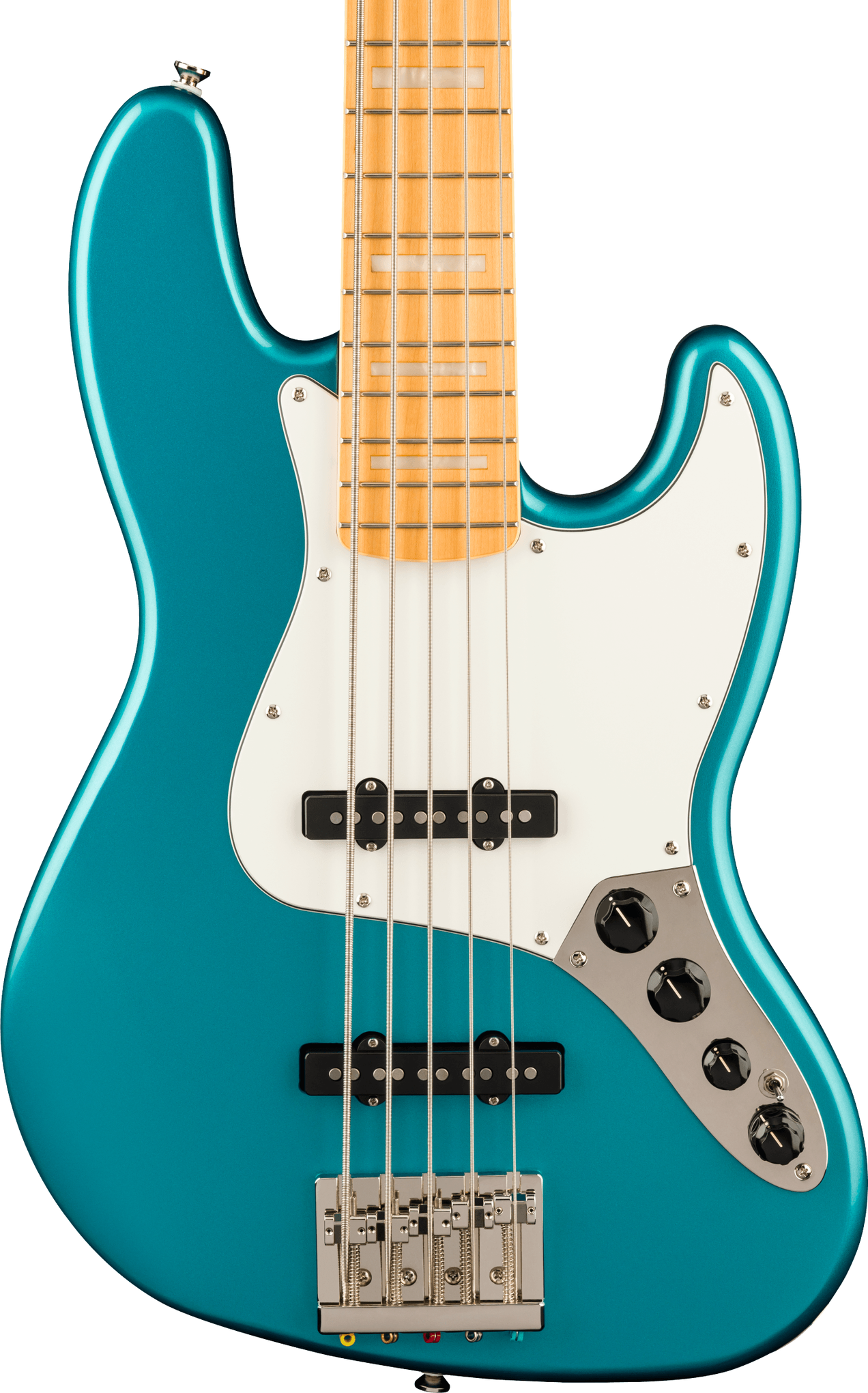The Squier Classic Vibe Active '70s Jazz Bass in Ocean Turquoise blends iconic 1970s aesthetics with versatile modern electronics. Its pair of Fender Designed alnico Noiseless pickups deliver clear, hum-free tone, while the onboard 9V preamp offers detailed control over volume, pickup blend, bass and treble boost. With a toggle to switch between active and passive modes, it adapts to any musical setting. A HiMass bridge boosts sustain and resonance, and the vintage-tinted gloss maple neck with block inlays completes the classic look.