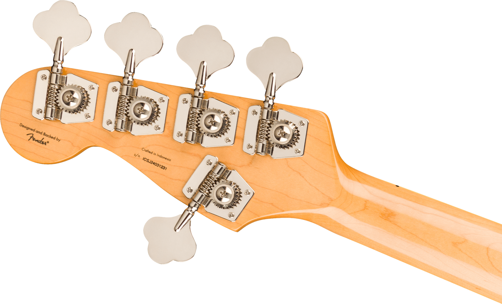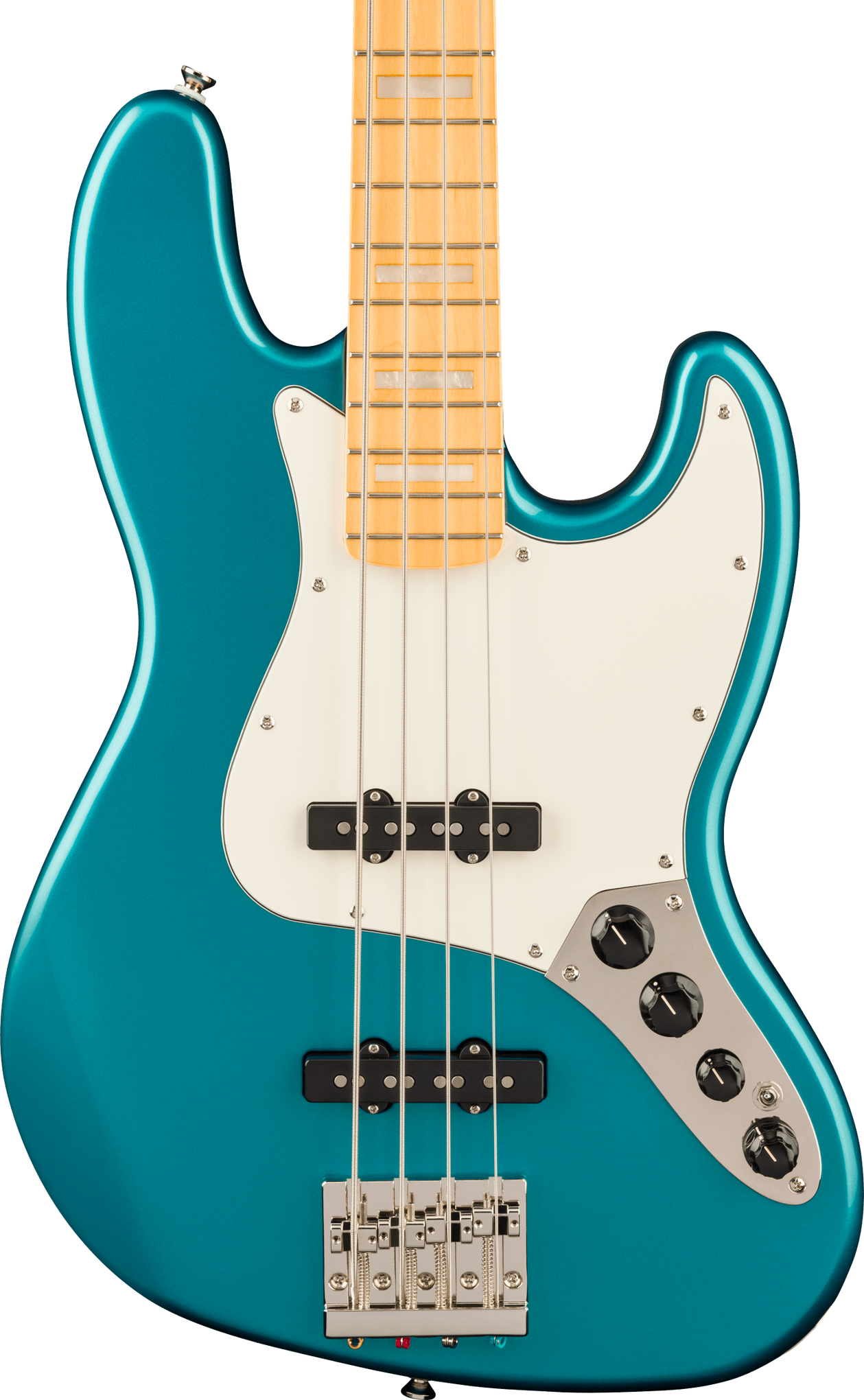 The Squier Classic Vibe Active '70s Jazz Bass V in Ocean Turquoise offers a bold look and powerful performance for modern players. With its Fender Designed alnico Noiseless pickups and active 9V preamp, this 5-string delivers rich, punchy tones without unwanted hum. Versatile tone-shaping comes from the blend control, treble/bass boost, and active/passive switch. A HiMass bridge ensures enhanced sustain, while the bound maple fingerboard with block inlays adds vintage style to the mix.