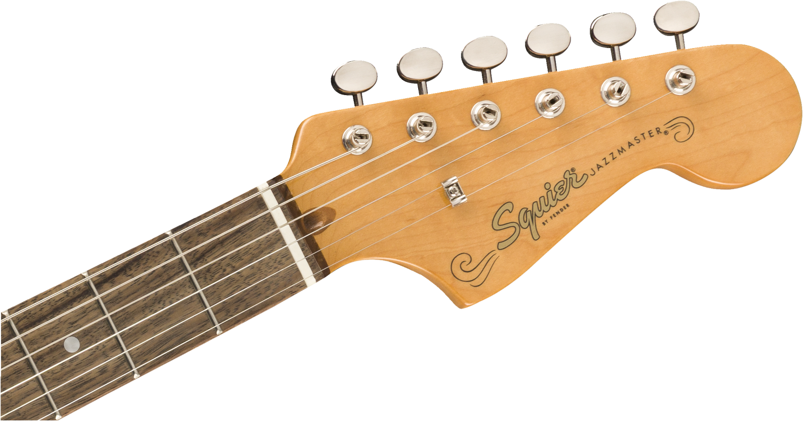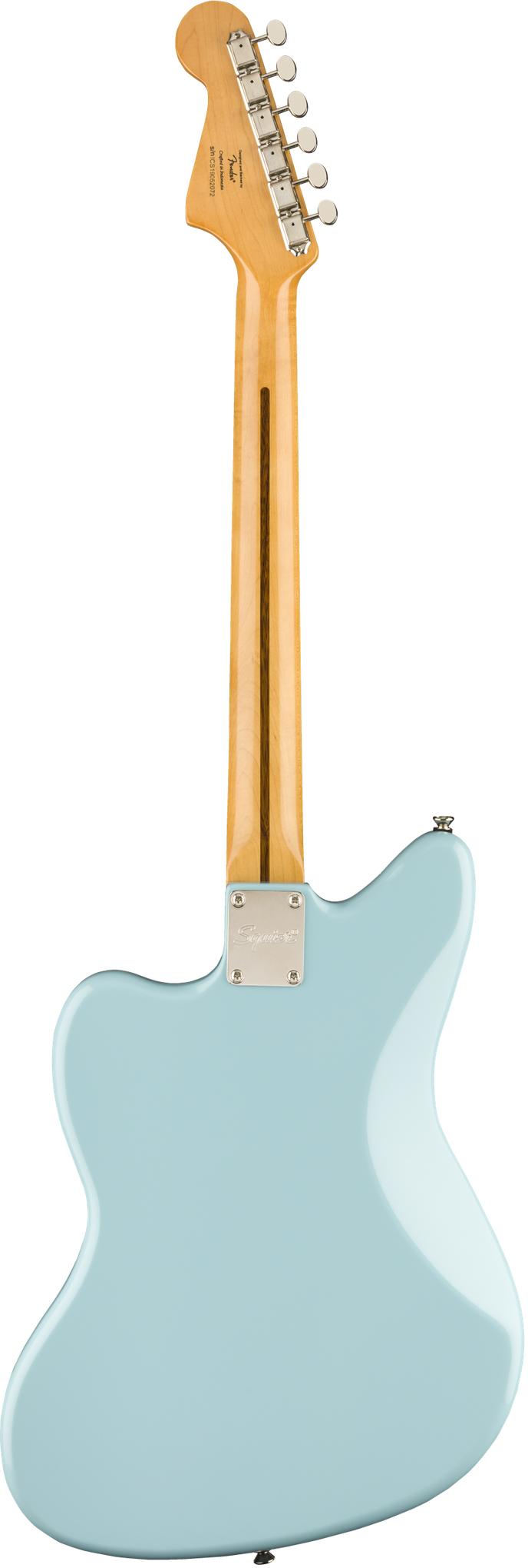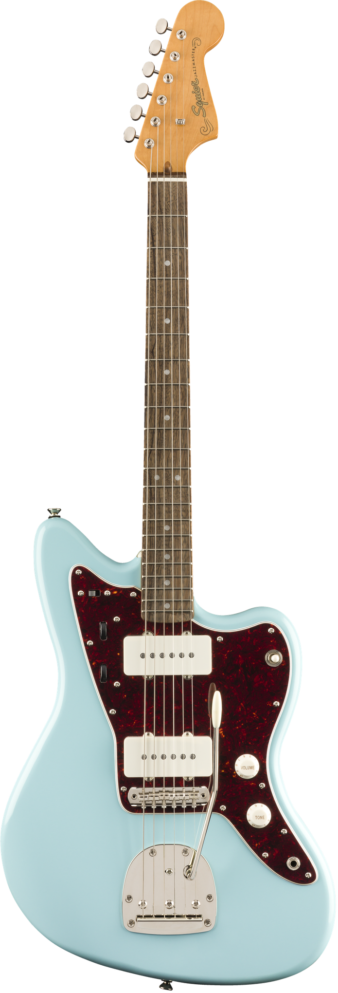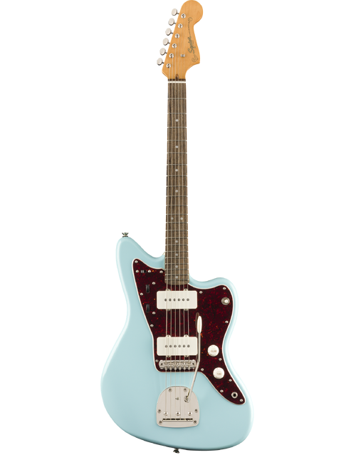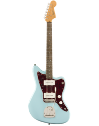 The Squier FSR Classic Vibe '60s Jazzmaster in Daphne Blue captures the unmistakable look and tone of Fender’s original offset icon. Powered by dual Fender-Designed Alnico single-coil pickups, it delivers the classic Jazzmaster sound—rich, articulate, and full of dynamic character. The comfortable “C”-shaped maple neck with a 9.5" Indian laurel fingerboard and narrow-tall frets ensures effortless playability across all styles. Its vintage-style floating tremolo system allows expressive bends and smooth vibrato, while the rhythm and lead circuit controls provide tonal versatility. With nickel-plated hardware, aged white plastics, and a 4-ply tortoiseshell pickguard, this model balances retro appeal with modern reliability. Finished in gloss polyurethane, it’s built to perform and inspire.