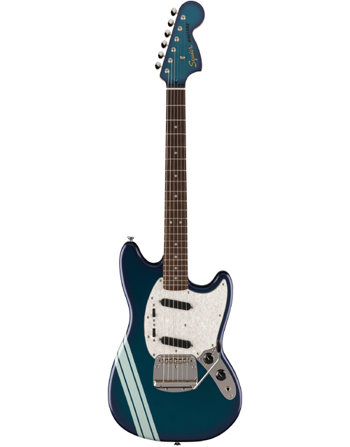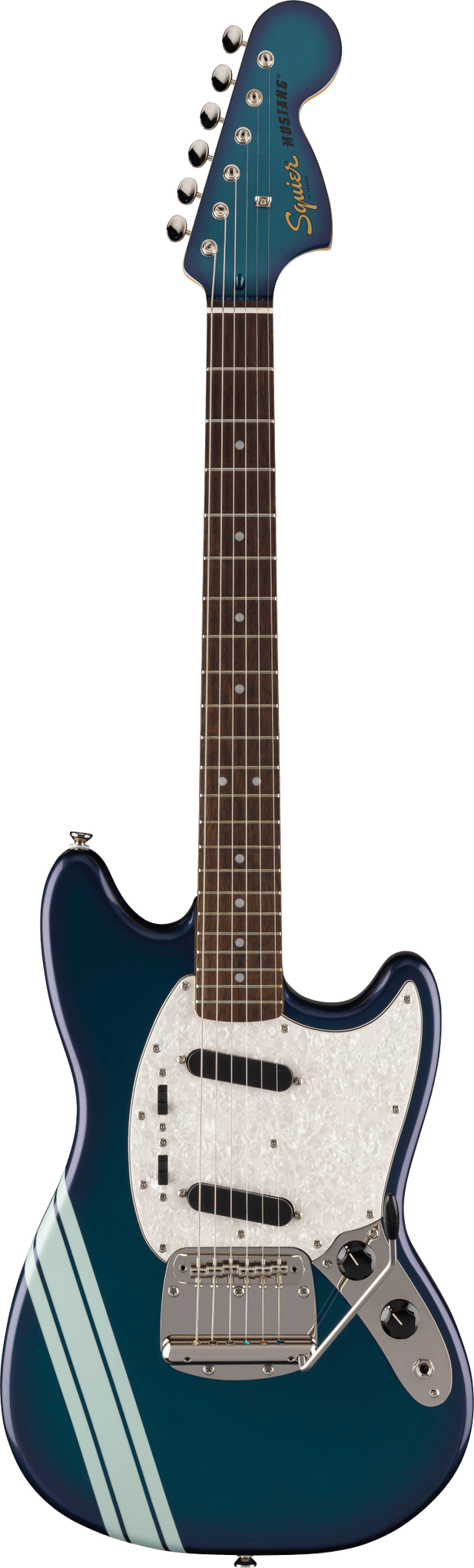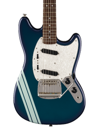 While small in stature, the Classic Vibe '60s Mustang packs a punch of incredible tone courtesy of the dual Fender Designed alnico single-coil pickups. Small hands will appreciate the short 24" scale length and slim, comfortable "C"-shaped neck profile with an easy-playing 9.5"-radius fingerboard and narrow-tall frets. This Mustang is faithful to the original with a vintage-style tremolo system for expressive string bending effects and floating bridge with barrel saddles for solid string stability. This throwback Squier model also features 1960s-inspired headstock markings, rich-looking nickel-plated hardware and a slick vintage-tint gloss neck finish for an old-school vibe.