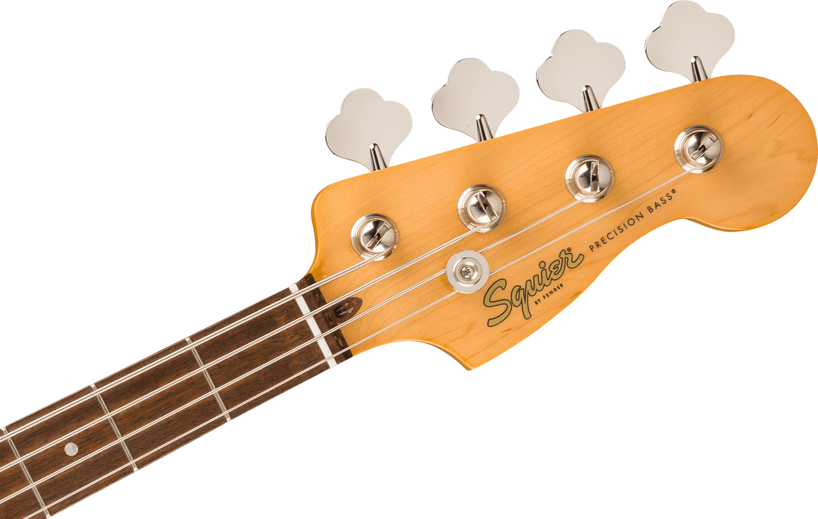 A tribute to the decade that made the P Bass an icon, the Classic Vibe '60s Precision Bass embodies the aesthetics of the original and produces massive tone courtesy of its Fender-Designed alnico split-coil pickup. Player-friendly features include a slim, comfortable "C"-shaped neck profile with an easy-playing 9.5"-radius fingerboard and narrow-tall frets, as well as a vintage-style bridge with threaded saddles. This throwback Squier model also features 1960s-inspired headstock markings, rich-looking nickel-plated hardware and a slick vintage-tint gloss neck finish for an old-school vibe.