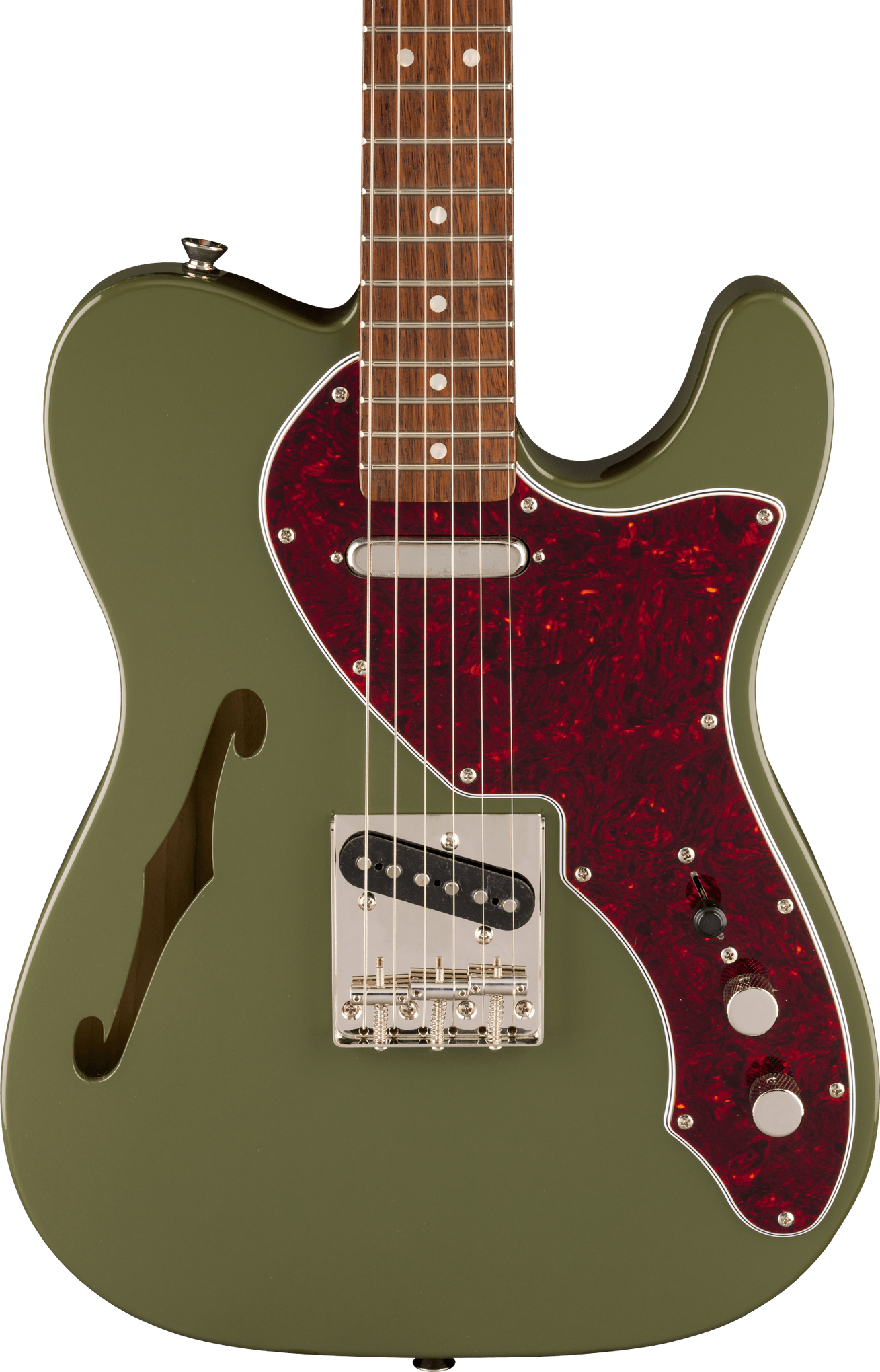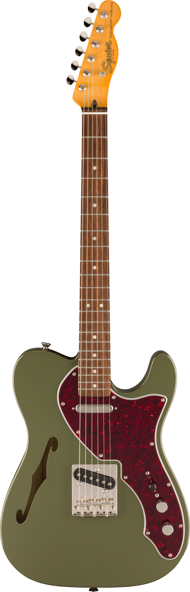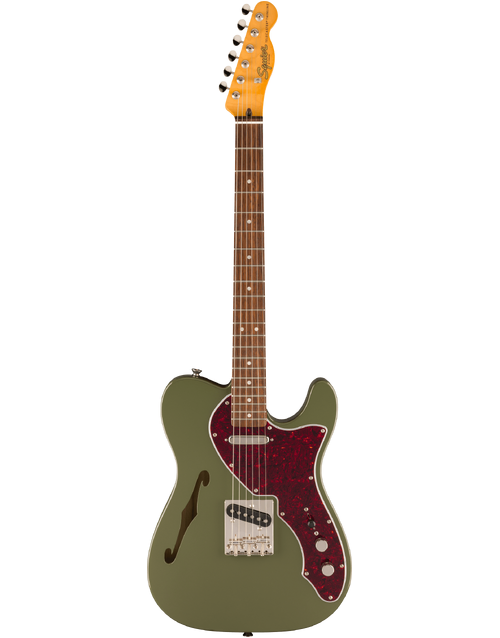 The Squier Classic Vibe FSR '60s Telecaster Thinline in Antique Olive captures the charm of Fender’s original semi-hollow Tele models with a fresh twist. Its lightweight Nyatoh body delivers airy resonance, while Fender-Designed Alnico single-coils provide clear, articulate tone with vintage sparkle. The slim “C”-shaped maple neck and 9.5" radius Laurel fingerboard ensure a smooth, comfortable feel, complemented by narrow-tall frets for precise bends. Finished in a sleek Antique Olive with a tortoiseshell pickguard and nickel-plated hardware, this Telecaster Thinline offers classic looks with modern reliability.