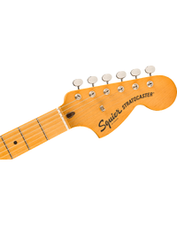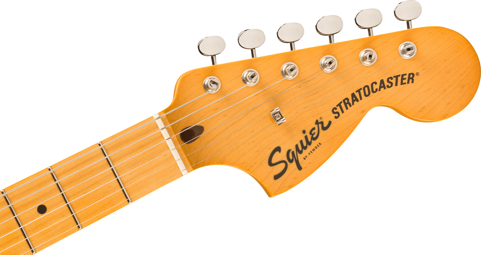 A tip of the hat to the large-headstock Strat models produced in the 1970s, the Classic Vibe '70s Stratocaster creates incredible tone courtesy of a trio of Fender-Designed alnico single-coil pickups. Player-friendly features include a slim, comfortable "C"-shaped neck profile with an easy-playing 9.5"-radius fingerboard and narrow-tall frets, as well as a vintage-style tremolo system for expressive string bending effects. This throwback Squier model also features 1970s-inspired headstock markings, rich-looking nickel-plated hardware and a slick vintage-tint gloss neck finish for an old-school vibe. Features. 100% designed by FenderInspired by 1970s-era Stratocaster modelsFender-Designed alnico pickupsVintage-tint gloss neck finishNickel-plated hardware