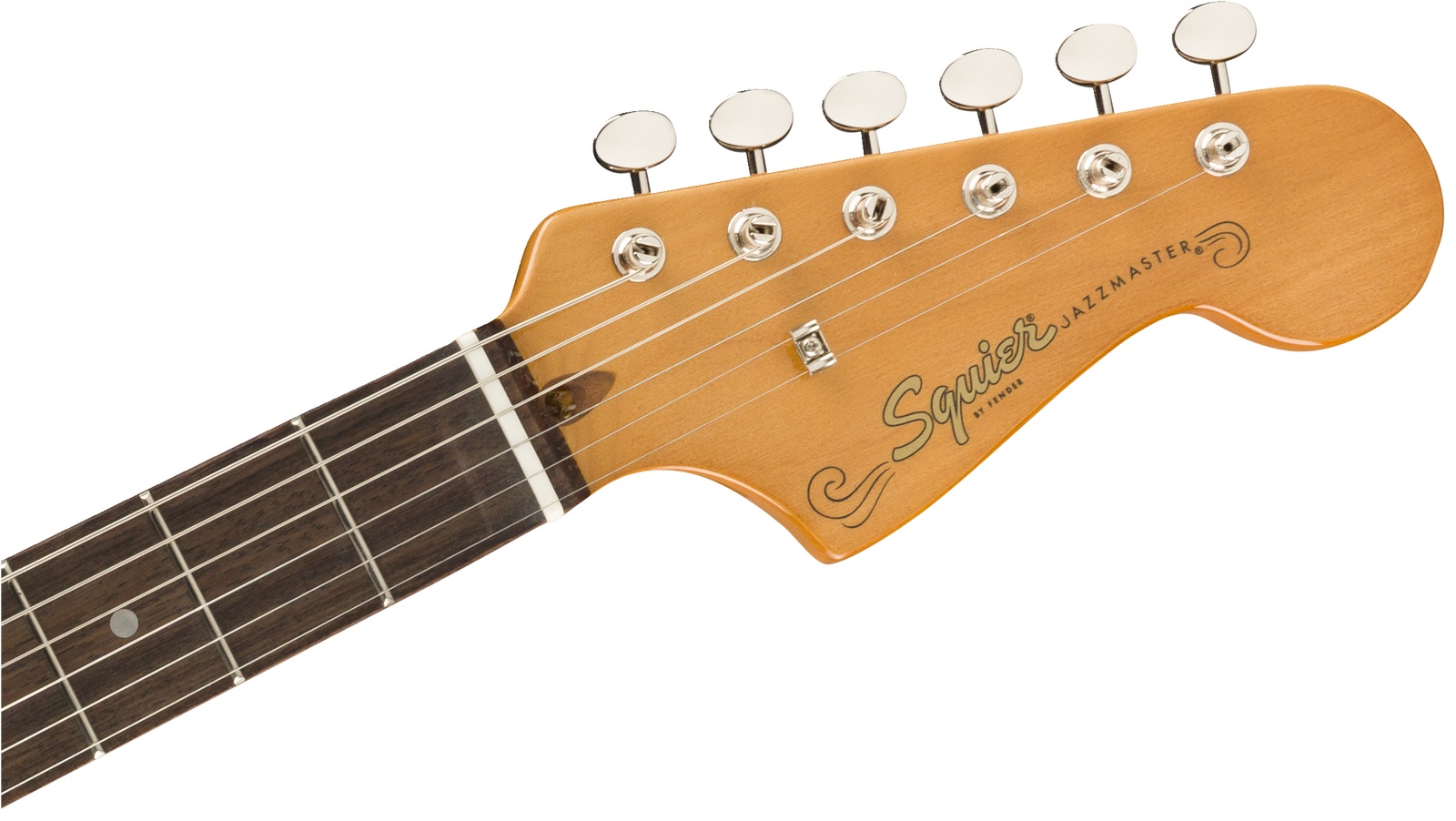 The Classic Vibe '60s Jazzmaster is a faithful and striking homage to the iconic Fender favorite, producing undeniable Jazzmaster tone, courtesy of its dual Fender-Designed alnico single coil pickups. Player-friendly features include a slim and comfortable "C"-shaped neck profile with an easy-playing 9.5"-radius fingerboard and narrow-tall frets, a vintage-style tremolo system for expressive string bending effects, and a floating bridge with barrel saddles. This throwback Squier model also features 1960s inspired headstock markings, nickel-plated hardware and a slick vintage-tinted gloss neck finish for an old-school aesthetic.