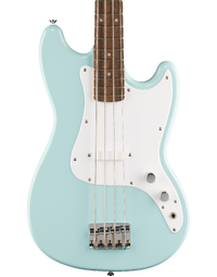 The Squier Sonic Bronco Bass is built as a straightforward short-scale bass with a familiar layout and easy handling. A thin, lightweight poplar body keeps the instrument comfortable to play, while the 30 inch scale length reduces reach and string tension. The maple neck uses a slim C-shaped profile with a narrow nut width, supporting relaxed fretting and smooth movement along the fingerboard.