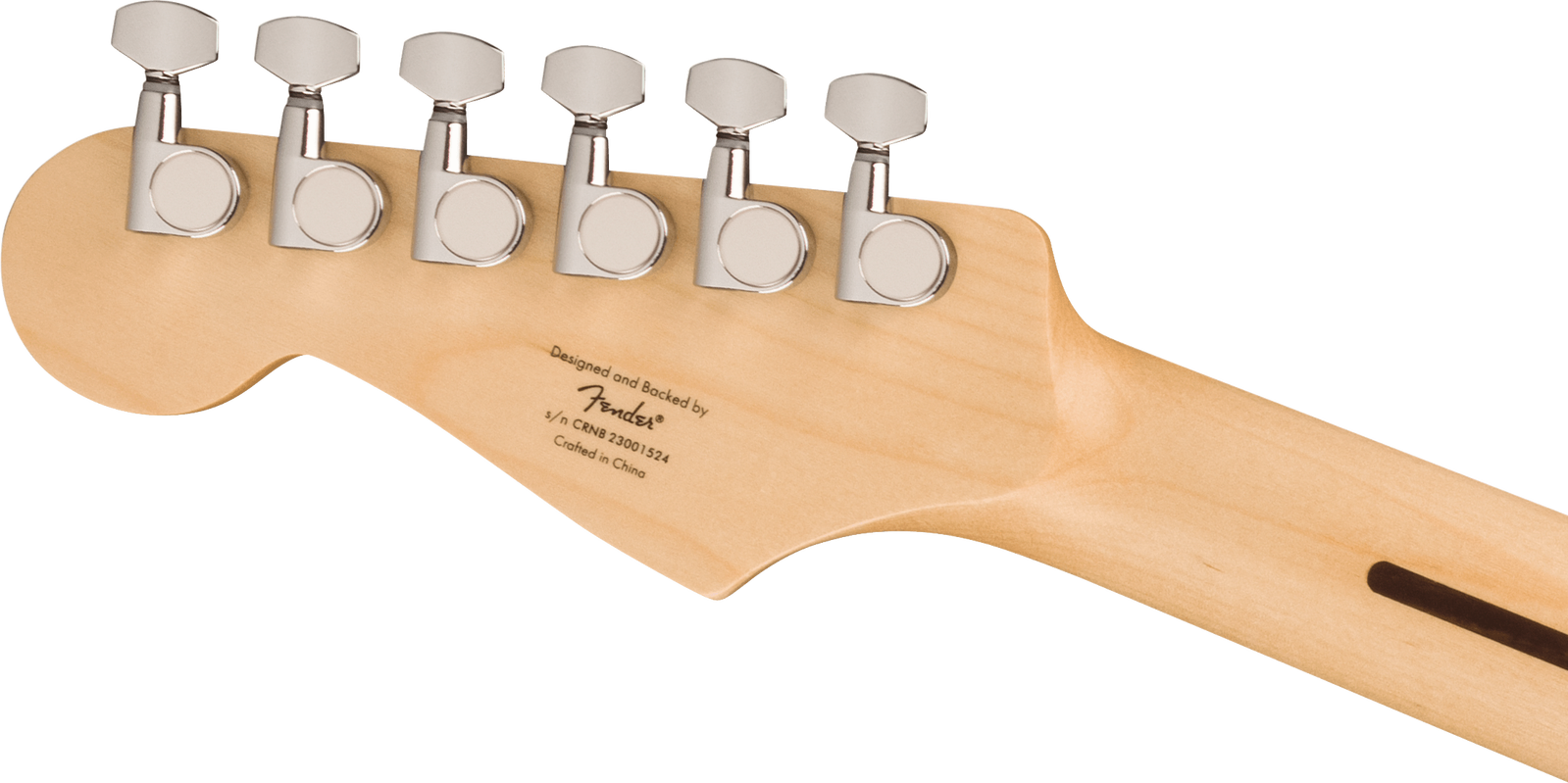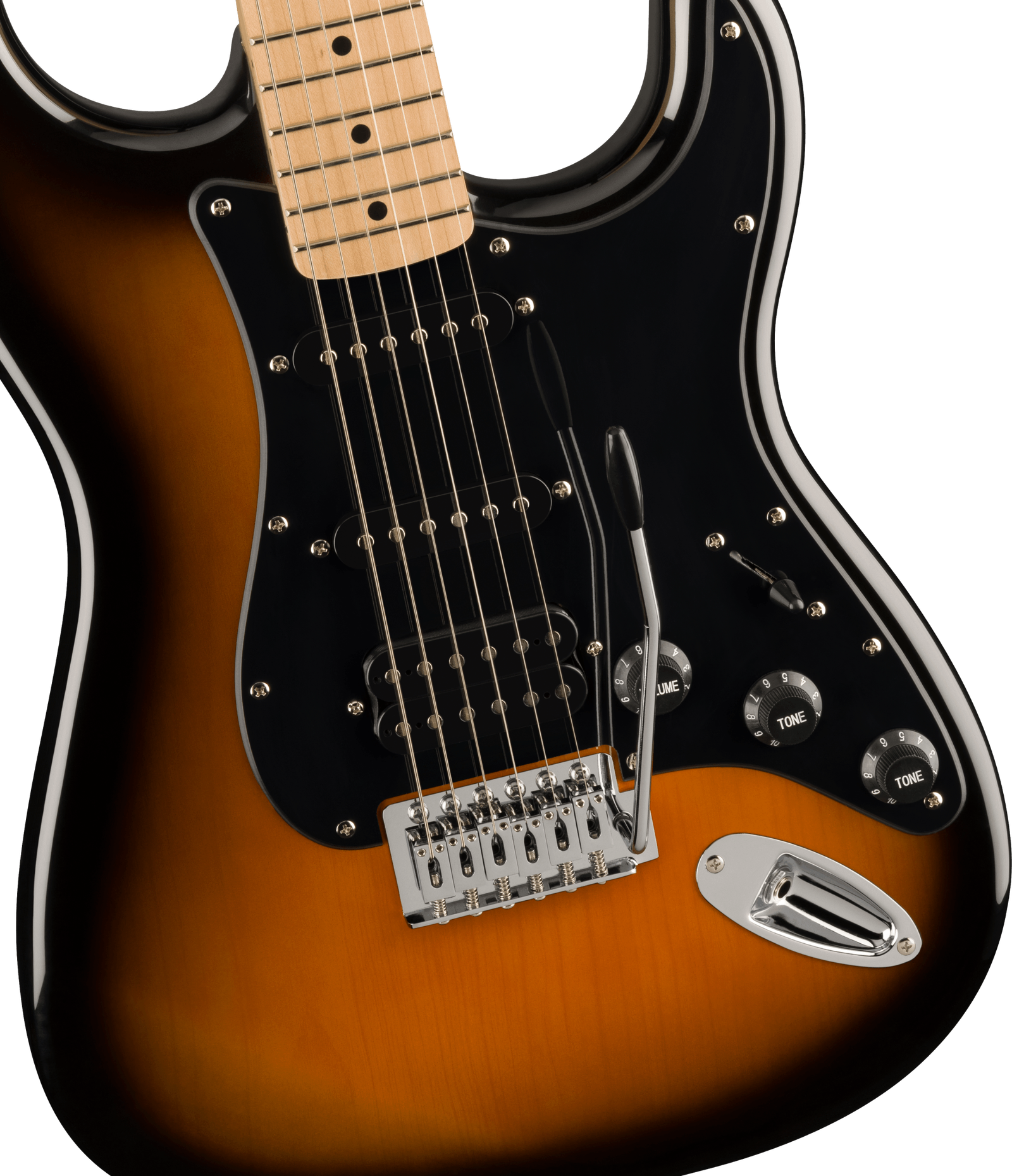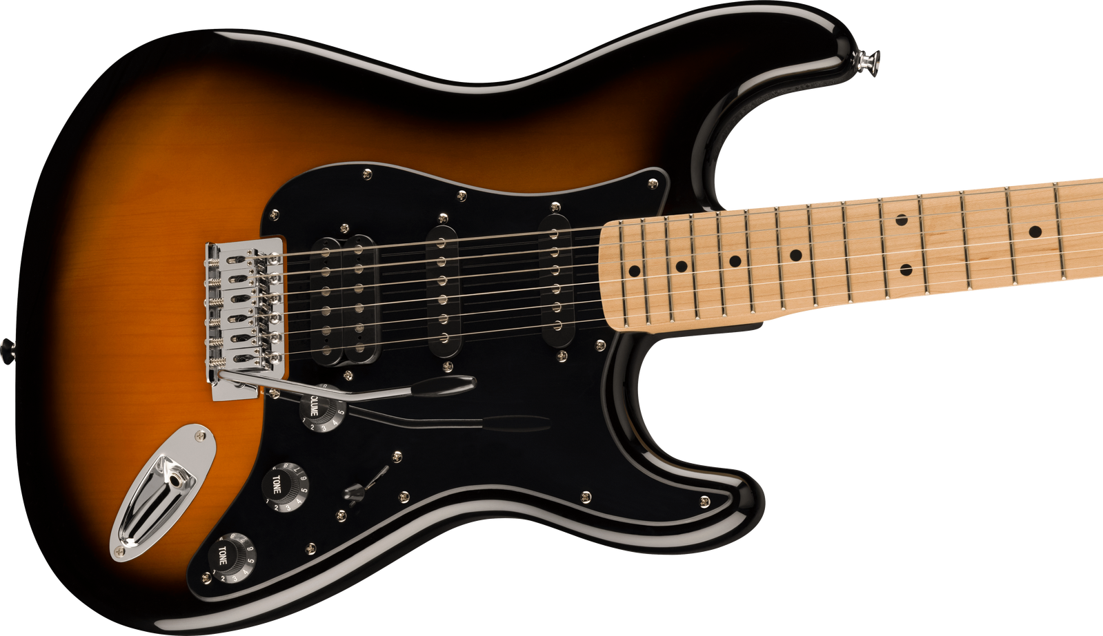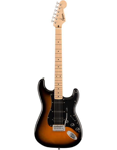 Experience sonic versatility with the Squier Sonic Stratocaster HSS. Its 2-Colour Sunburst finish adds a vibrant touch to this beginner-friendly guitar. With its slim neck and lightweight body, it offers optimal comfort for hours of play. The HSS pickup configuration provides a powerful humbucking bridge pickup for high-output tones, complemented by the crystal-clear clean tones from the single-coil neck and middle pickups. This Stratocaster also features a synchronized tremolo bridge for expressive effects, sealed die-cast tuning machines for accurate tuning, and durable chrome-plated hardware. Whether you're strumming chords or shredding solos, this guitar has the versatility and style to accompany you on your musical journey.
