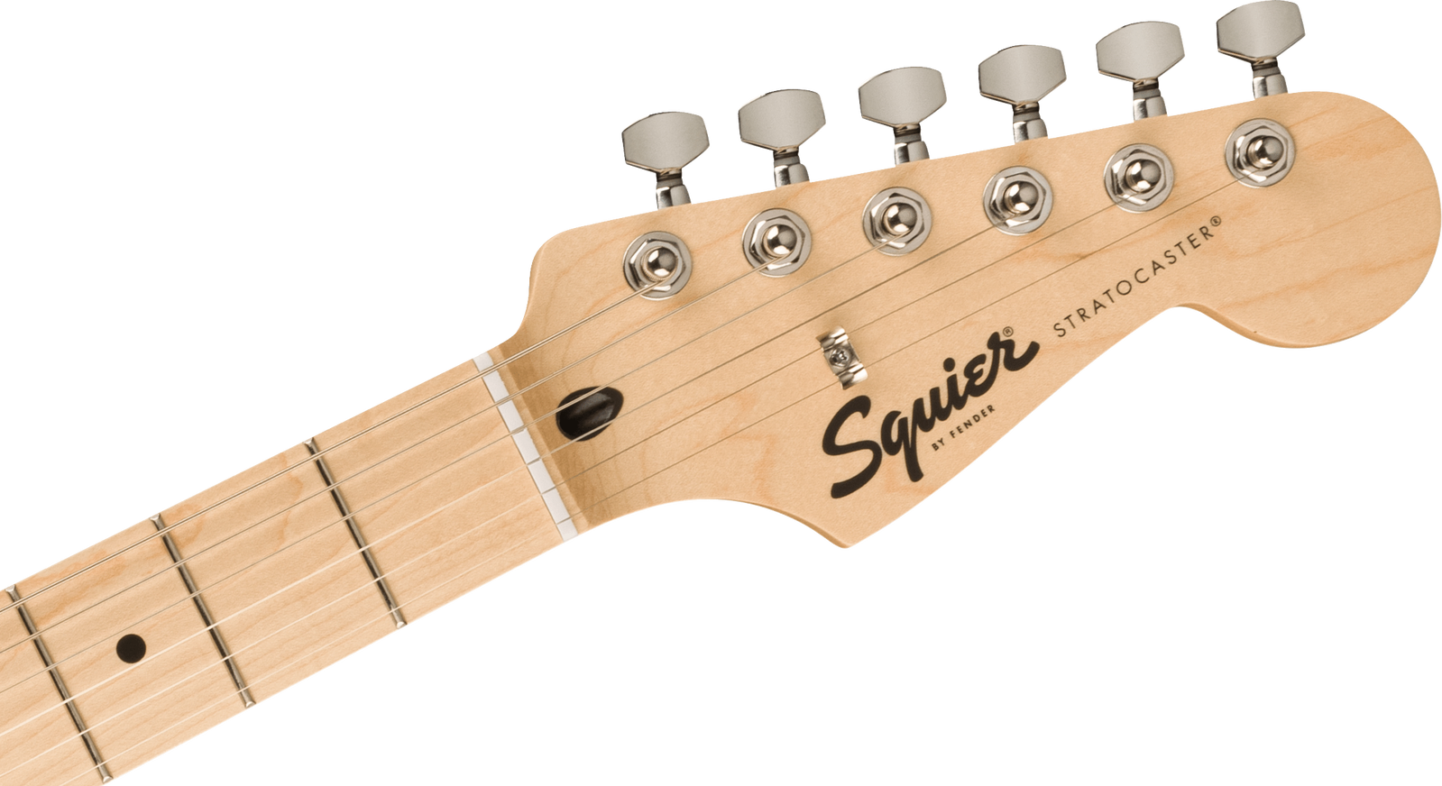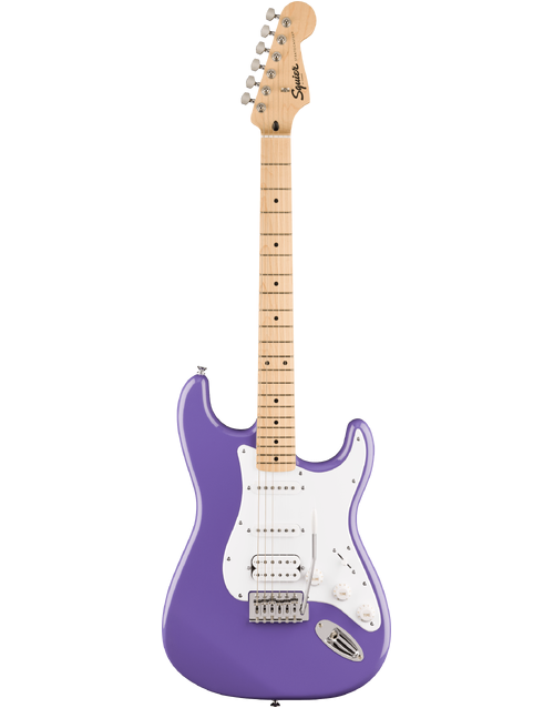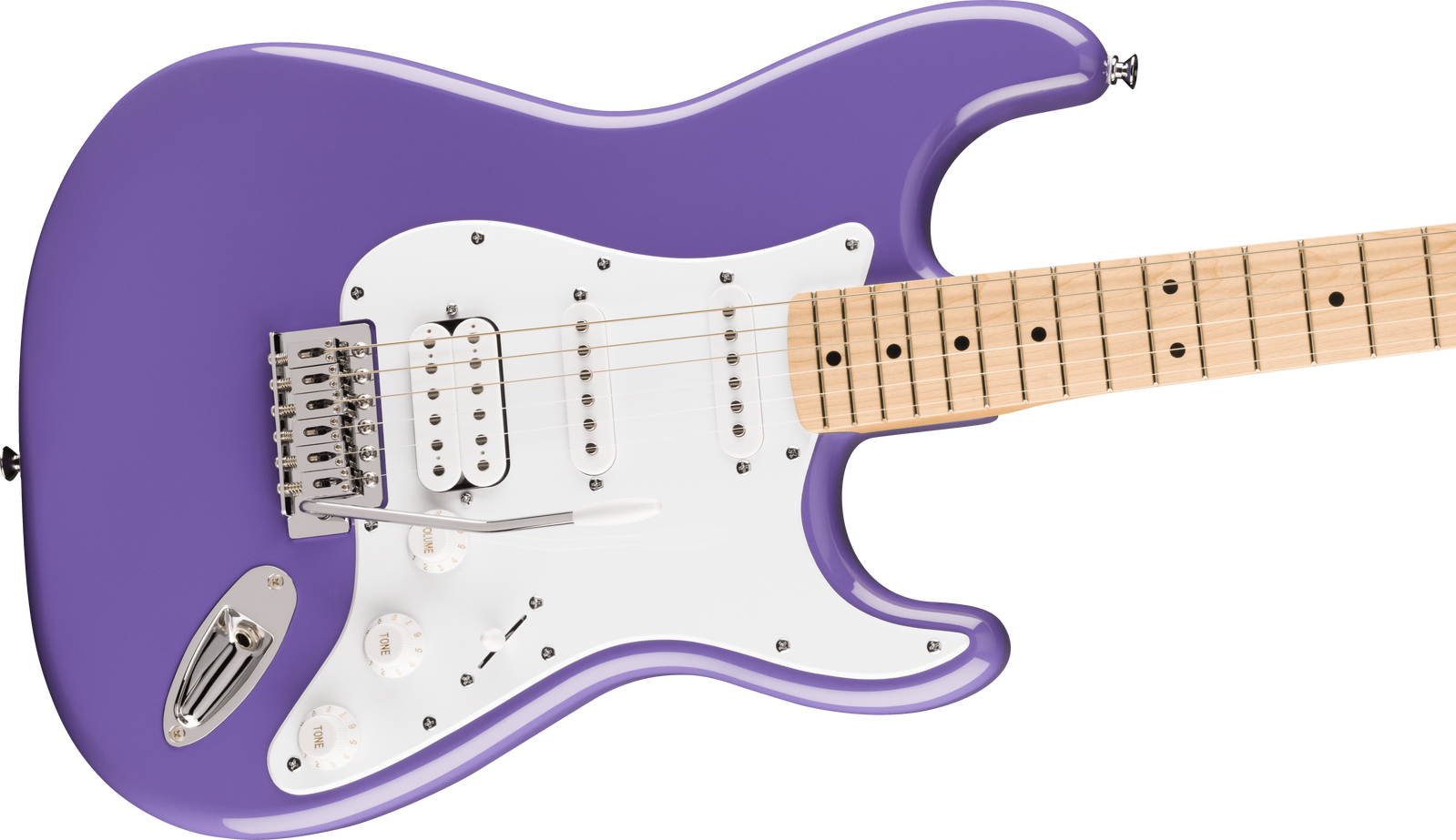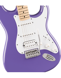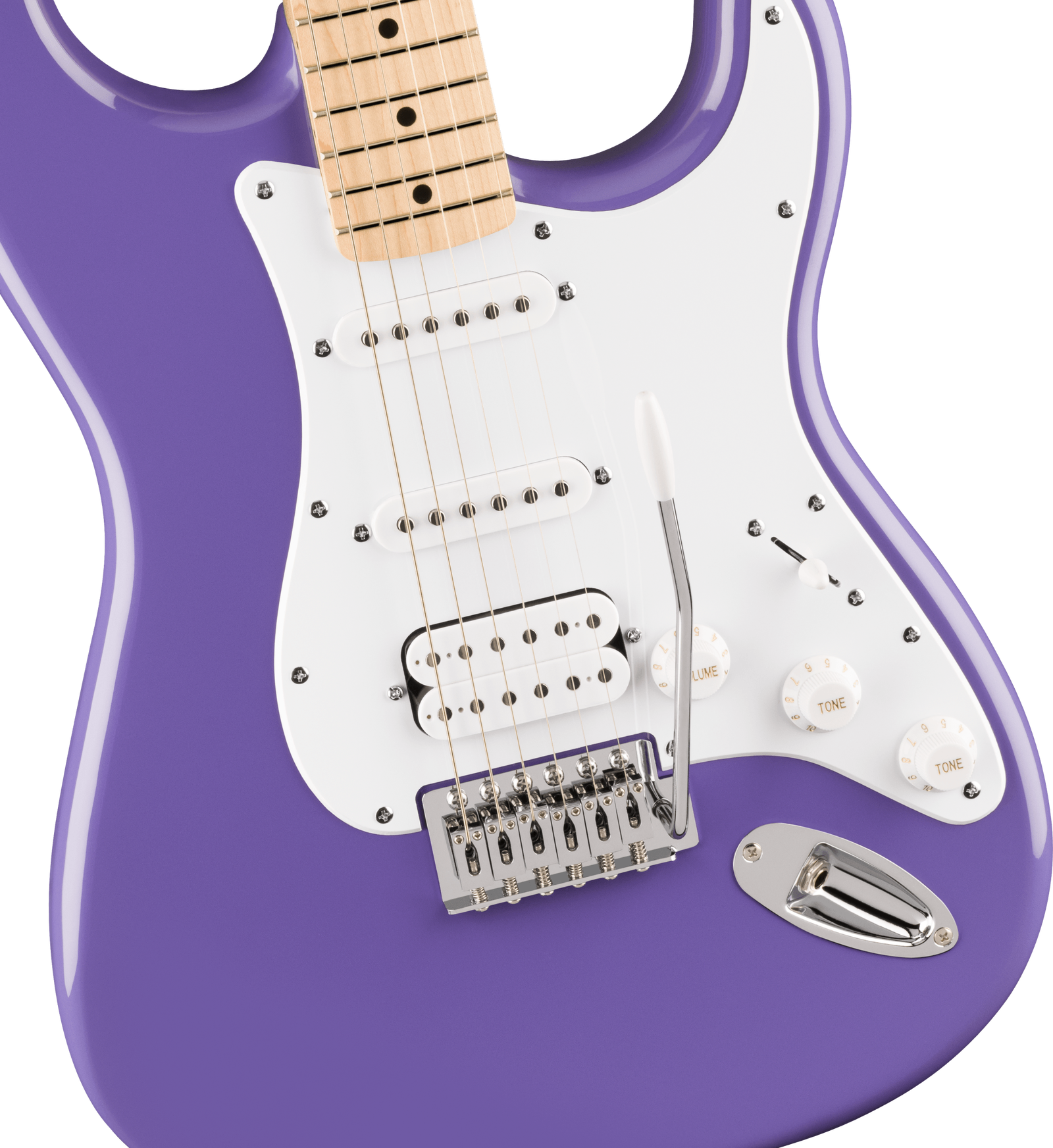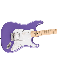 Experience sonic versatility with the Squier Sonic Stratocaster HSS. Its Ultraviolet finish adds a vibrant touch to this beginner-friendly guitar. With its slim neck and lightweight body, it offers optimal comfort for hours of play. The HSS pickup configuration provides a powerful humbucking bridge pickup for high-output tones, complemented by the crystal-clear clean tones from the single-coil neck and middle pickups. This Stratocaster also features a synchronized tremolo bridge for expressive effects, sealed die-cast tuning machines for accurate tuning, and durable chrome-plated hardware. Whether you're strumming chords or shredding solos, this guitar has the versatility and style to accompany you on your musical journey.
