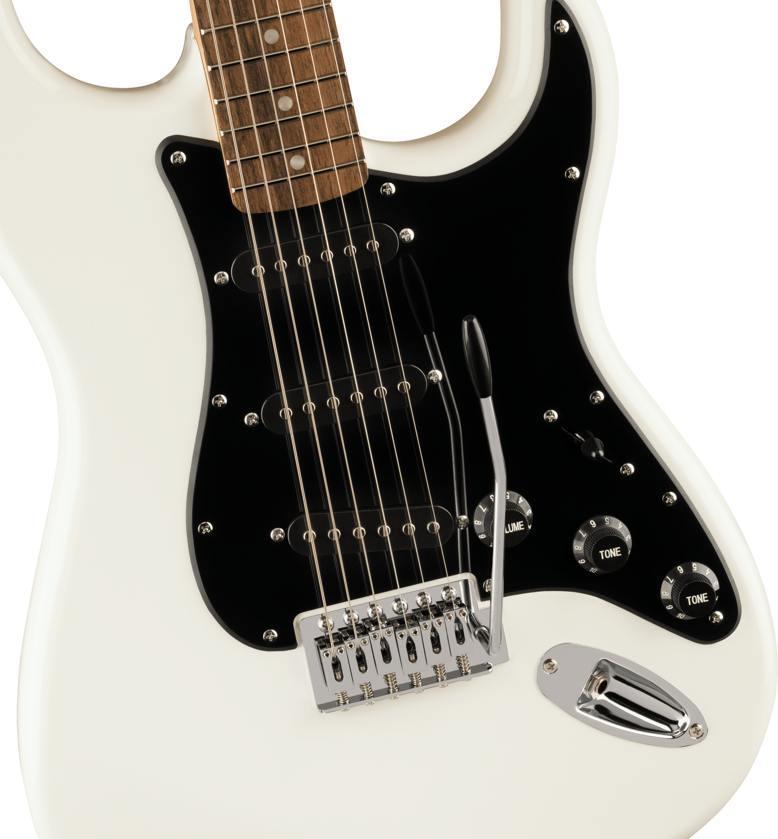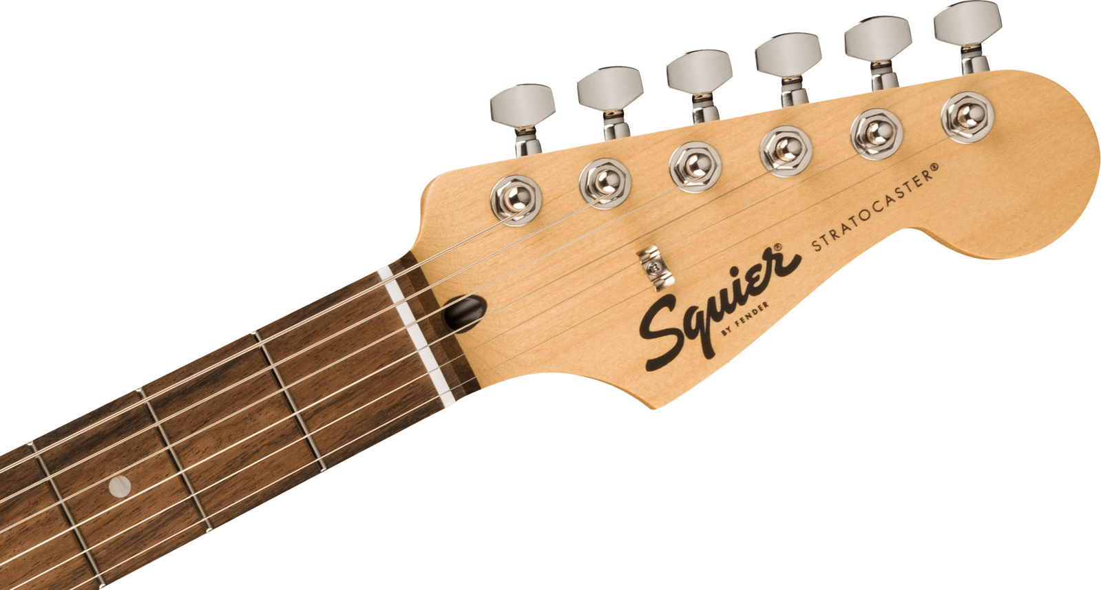 Equipped with a trio of Squier single-coil pickups, this guitar produces crisp and articulate tones across a wide variety of musical styles. Whether you prefer mellow melodies or vibrant chordal progressions, the Squier Sonic Stratocaster has the versatility to accommodate your musical preferences. The synchronized tremolo bridge enables expressive string-bending effects, adding depth and character to your playing. With sealed die-cast tuning machines, you can achieve accurate and reliable tuning, ensuring your guitar always sounds its best.