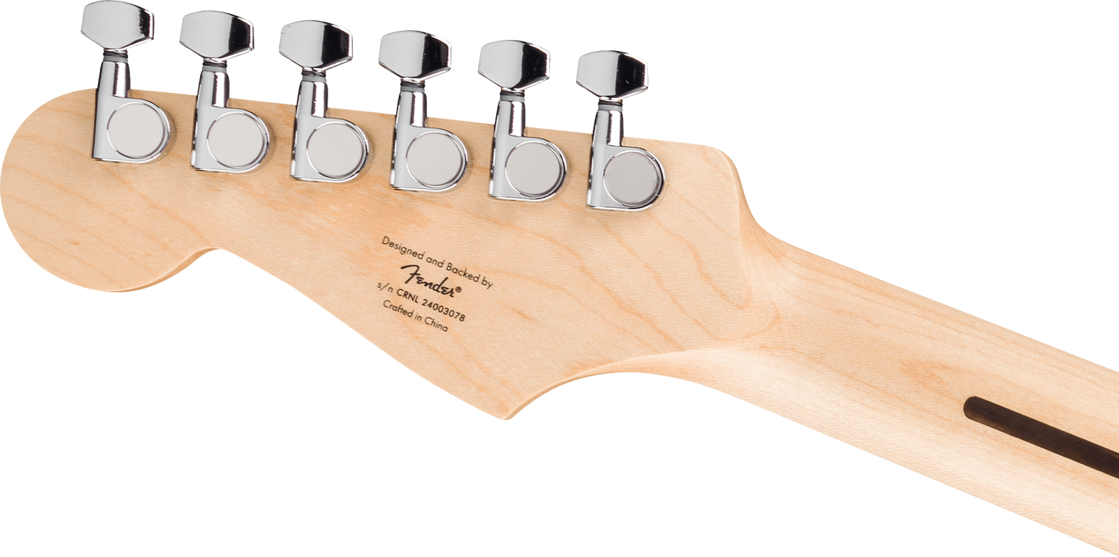Equipped with a trio of Squier single-coil pickups, this guitar produces crisp and articulate tones across a wide variety of musical styles. Whether you prefer mellow melodies or vibrant chordal progressions, the Squier Sonic Stratocaster has the versatility to accommodate your musical preferences. The synchronized tremolo bridge enables expressive string-bending effects, adding depth and character to your playing. With sealed die-cast tuning machines, you can achieve accurate and reliable tuning, ensuring your guitar always sounds its best.