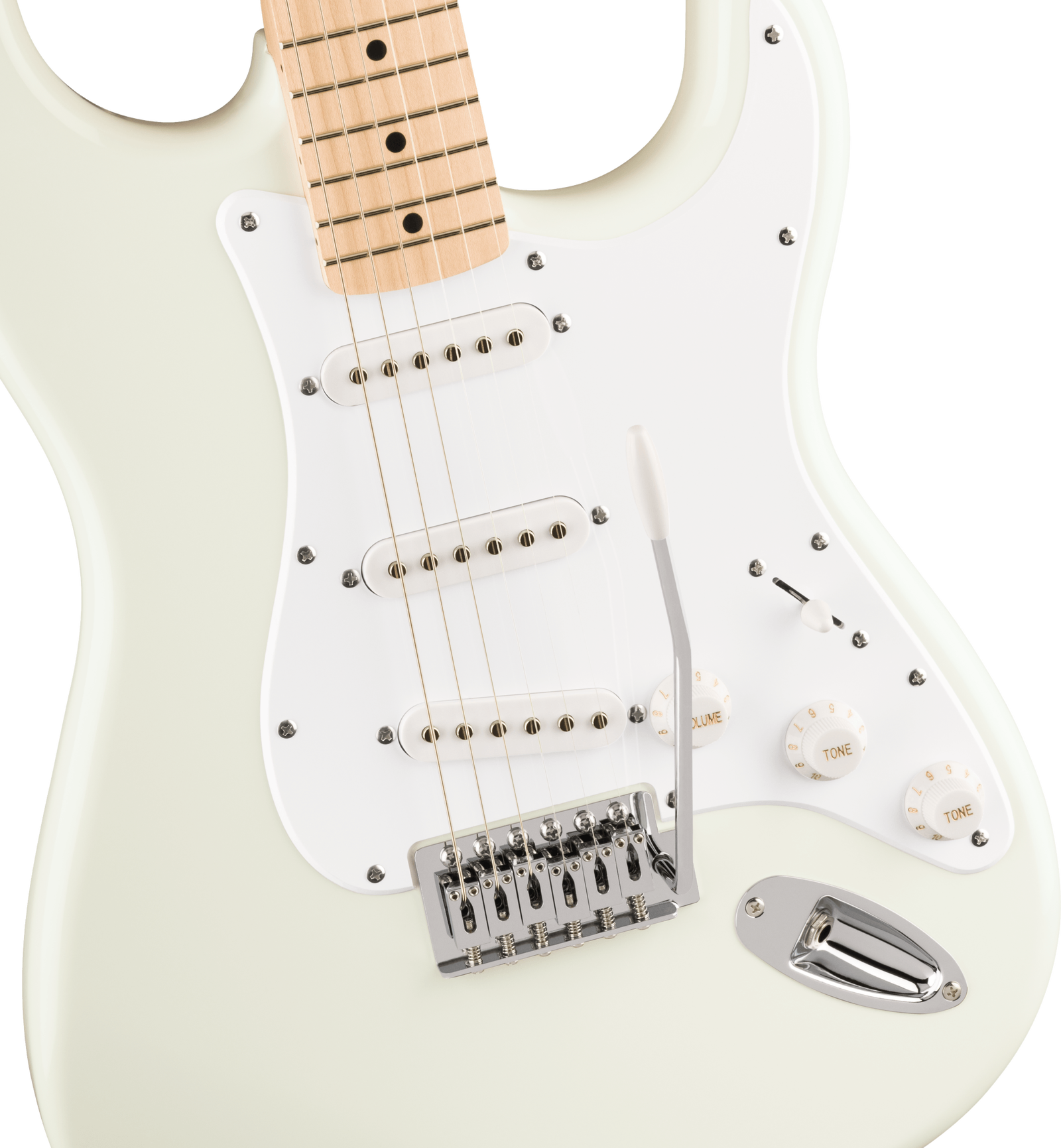 Introducing the Squier Sonic Stratocaster, the ideal guitar for beginners embarking on their musical journey. With its stunning Arctic White finish, this guitar not only looks captivating but also delivers inspiring tones that will fuel your creativity. Featuring a slim and inviting "C"-shaped neck profile, the Squier Sonic Stratocaster ensures optimal playing comfort, allowing you to practice for hours without fatigue. Its lightweight body further enhances your playing experience, making it a joy to play.
