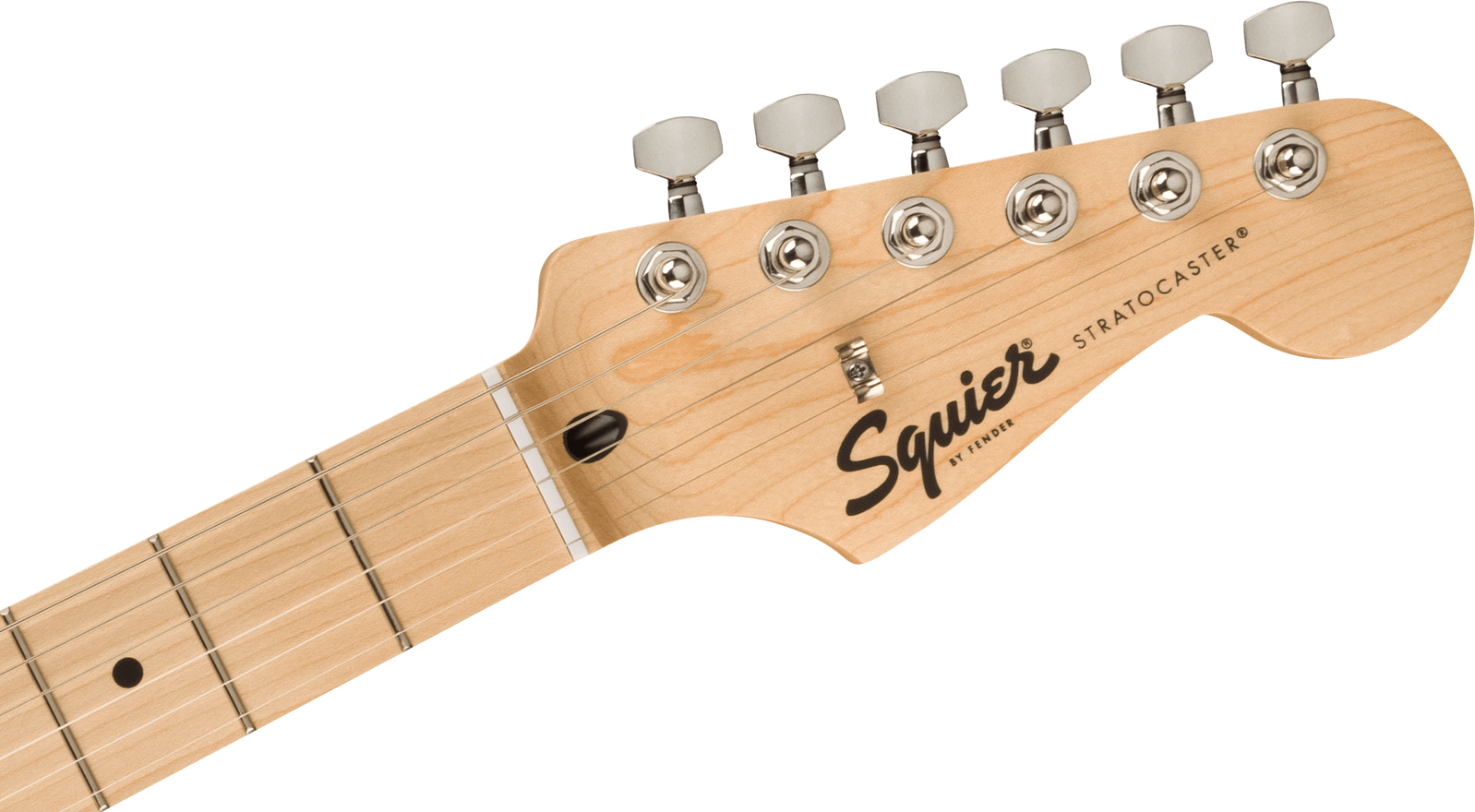Equipped with a trio of Squier single-coil pickups, this guitar produces crisp and articulate tones across a wide variety of musical styles. Whether you prefer mellow melodies or vibrant chordal progressions, the Squier Sonic Stratocaster has the versatility to accommodate your musical preferences. The synchronized tremolo bridge enables expressive string-bending effects, adding depth and character to your playing. With sealed die-cast tuning machines, you can achieve accurate and reliable tuning, ensuring your guitar always sounds its best.