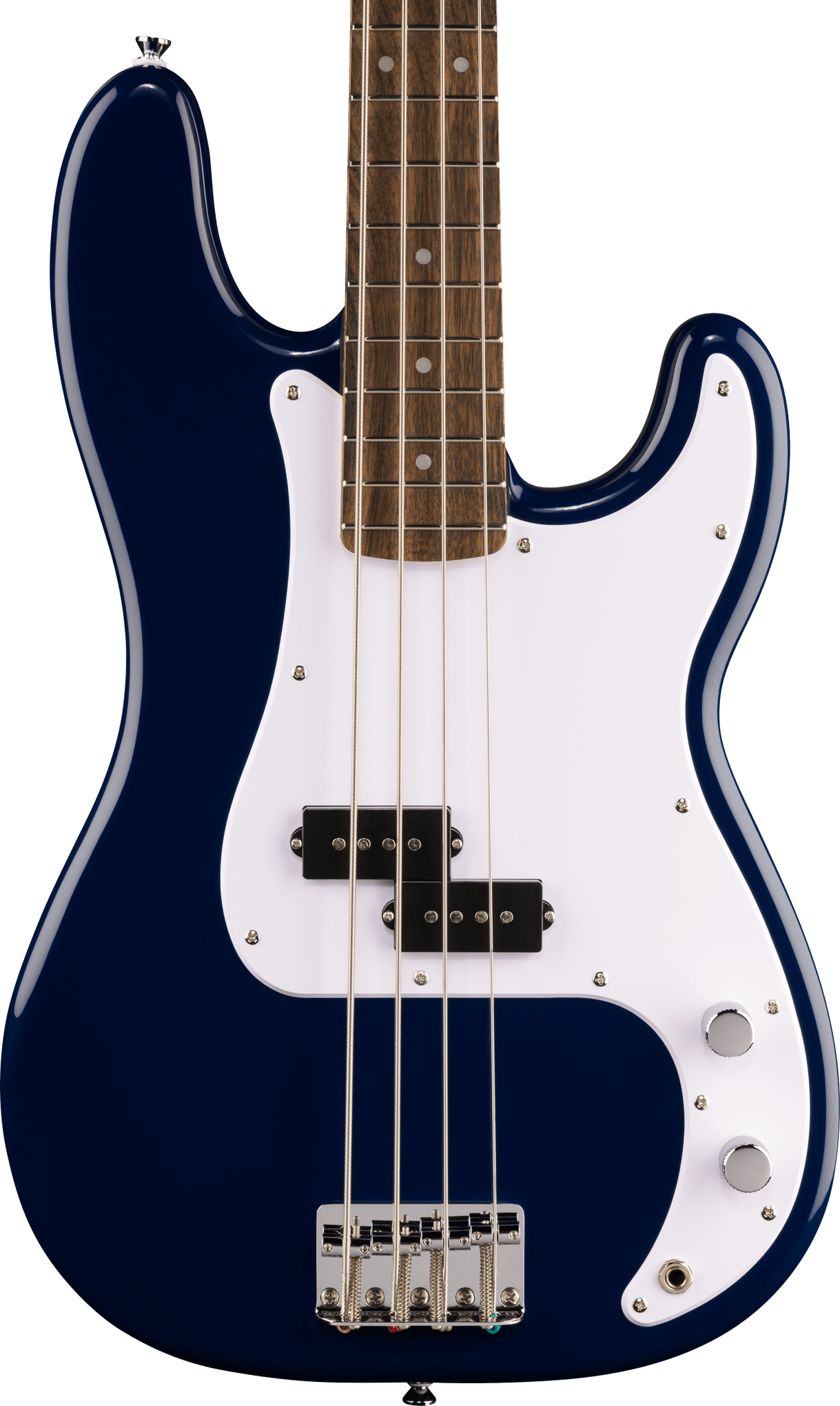 A ceramic split single-coil pickup delivers a focused, punchy bass sound through basic volume and tone controls. The four-saddle hardtail bridge supports solid intonation, while vintage-style open-gear tuning machines provide smooth, dependable tuning. Chrome hardware rounds out the clean, traditional look.