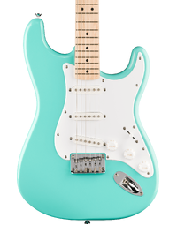 The Squier Sonic Stratocaster HT offers a straightforward Strat-style playing experience with a focus on comfort, stability, and clean tonal range. A thin, lightweight poplar body keeps the instrument easy to handle, paired with a maple neck shaped to a slim C profile for relaxed fretting across the full 25.5 inch scale length.