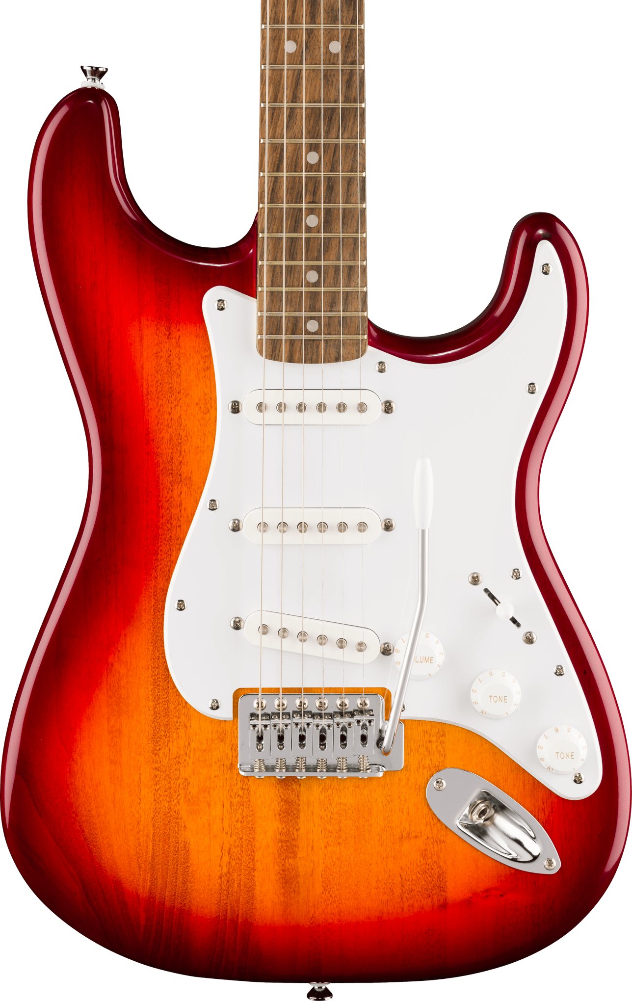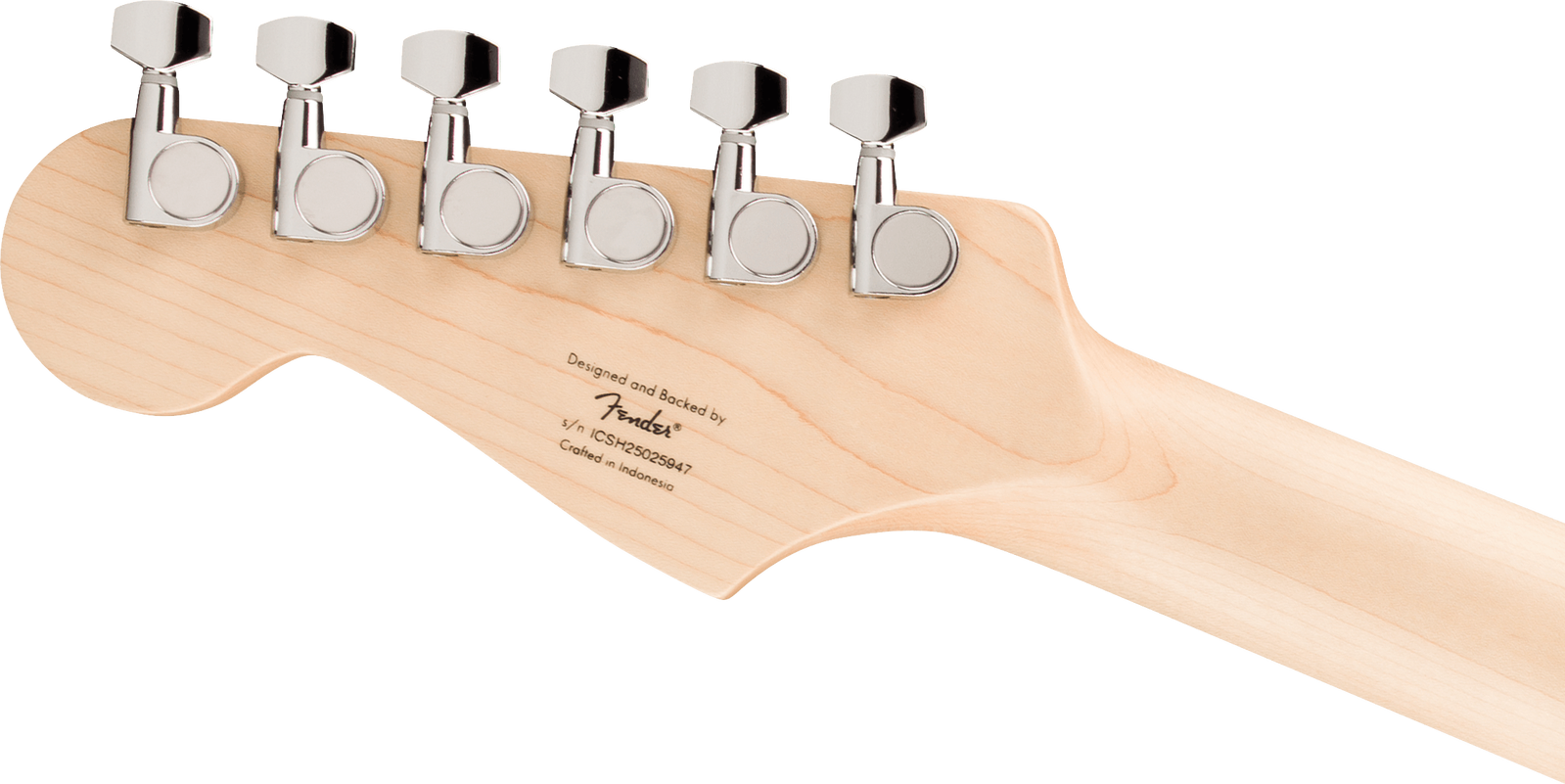 Three ceramic single-coil pickups provide bright, articulate tones across all five switch positions, covering clean rhythm sounds, sharper lead voices, and blended in-between settings. The vintage-style six-saddle tremolo bridge allows expressive vibrato work, adding movement and character to chords and lead lines. Sealed die-cast tuning machines help maintain tuning stability, with chrome hardware completing the traditional Strat look.