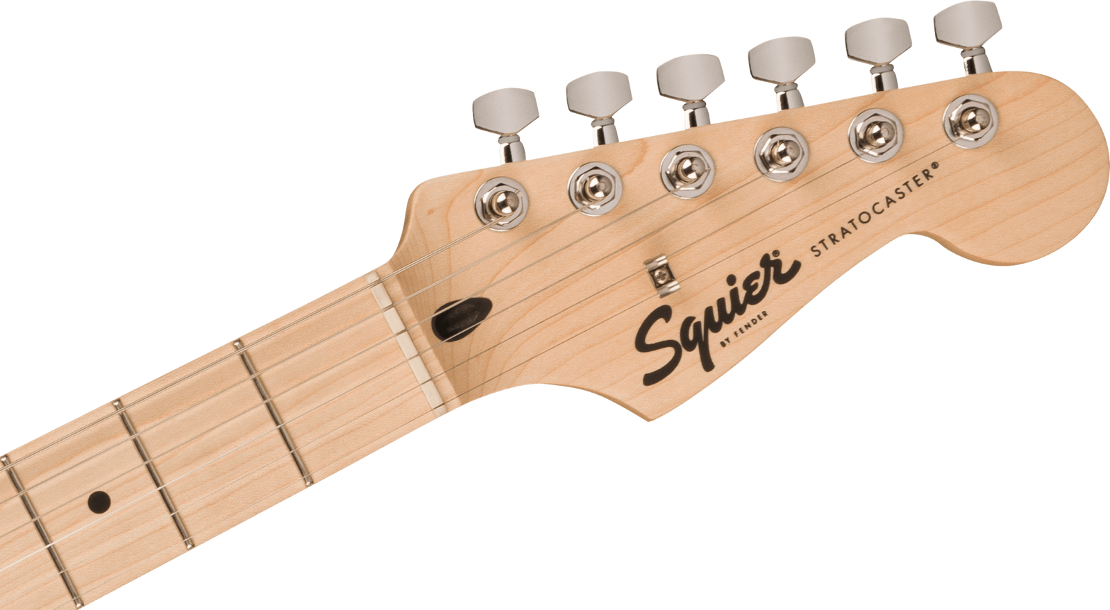 Equipped with a trio of Squier single-coil pickups, this guitar produces crisp and articulate tones across a wide variety of musical styles. Whether you prefer mellow melodies or vibrant chordal progressions, the Squier Sonic Stratocaster has the versatility to accommodate your musical preferences. The synchronized tremolo bridge enables expressive string-bending effects, adding depth and character to your playing. With sealed die-cast tuning machines, you can achieve accurate and reliable tuning, ensuring your guitar always sounds its best.