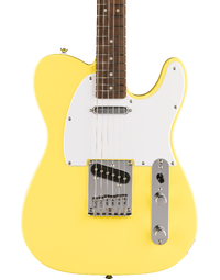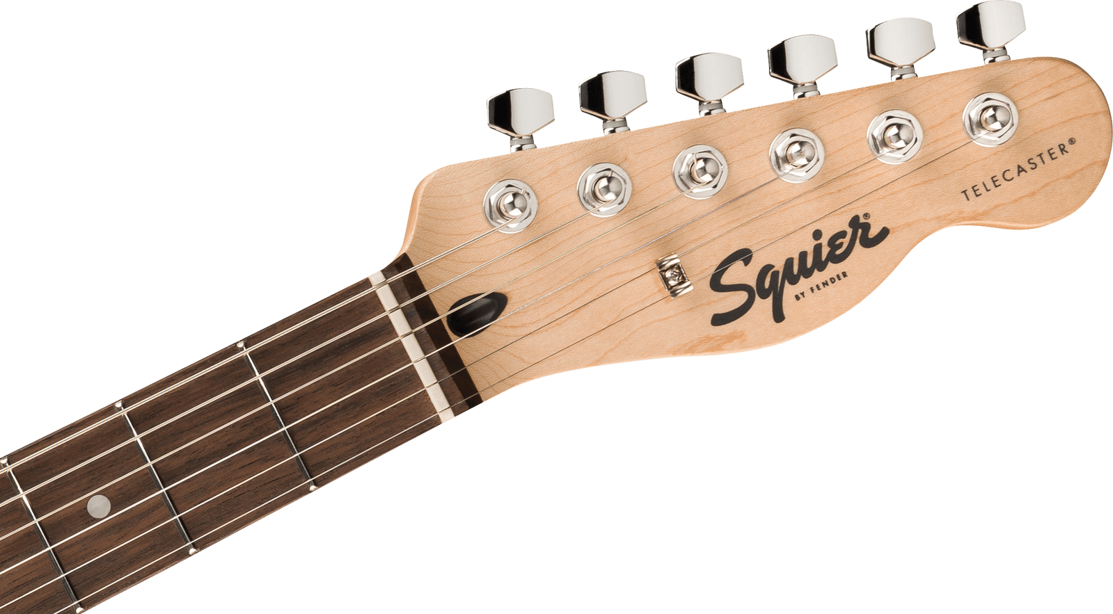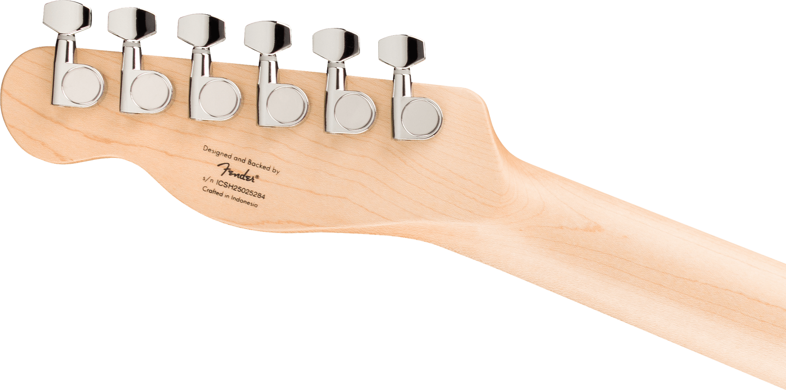 Two ceramic single-coil pickups provide bright, cutting tones with clear note definition, well suited to clean rhythms, articulate leads, and edge-of-breakup sounds. The six-saddle hardtail bridge offers a solid, fixed feel that supports stable tuning and consistent intonation, while sealed die-cast tuning machines help keep adjustments smooth and predictable. Chrome hardware completes the clean, traditional Telecaster look.