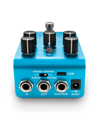 | MIDI | Cloudburst features full MIDI implementation and 300 presets, allowing you to control it remotely by sending MIDI commands from your controller or DAW via the EXP/MIDI jack or USB-C connection. Remotely bypass or engage the pedal, automate decay time or other knob adjustments in your DAW or recall unique presets for each song on your setlist; the possibilities with MIDI are limitless. |
