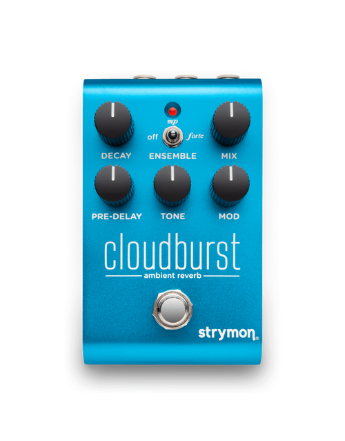 The Strymon Cloudburst’s Ensemble switch reveals a whole new world of captivating sounds never previously heard from a reverb pedal. Use it subtly to add harmonically rich and otherworldly dimensions to your ambient reverb soundscapes, or use it liberally to hear a lush synthesized string section swell under your guitar playing. Ensemble reacts to your entire guitar signal in an organic and musical way, delivering a richly responsive and uniquely inspiring playing experience.