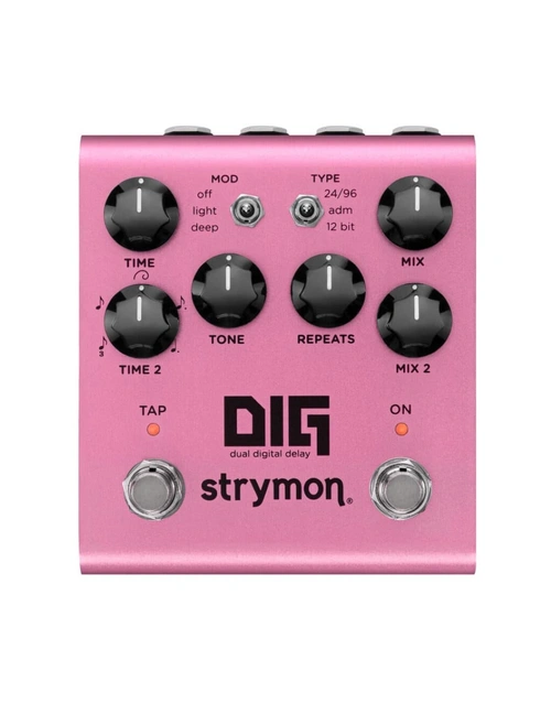 Rack-mount digital delays of the ’80s ushered in a new era of audio effects. The innovative electronic designs generated the cleanest delays that had yet been heard, but also created their own special and intriguing sonic characteristics. Thirty-plus years later, these sounds remain as distinctive and inspiring as ever. Strymon's thorough investigation of digital delay technology reveals the unique personalities that these delays possess. Delve into the DIG’s three digital delay voicings: the early ’80s adaptive delta modulation mode, the mid-’80s 12 bit pulse code modulation mode, and the modern high-resolution 24/96 mode. Multiply these distinct voicings by two and get DIG — your perfect dual delay ally.