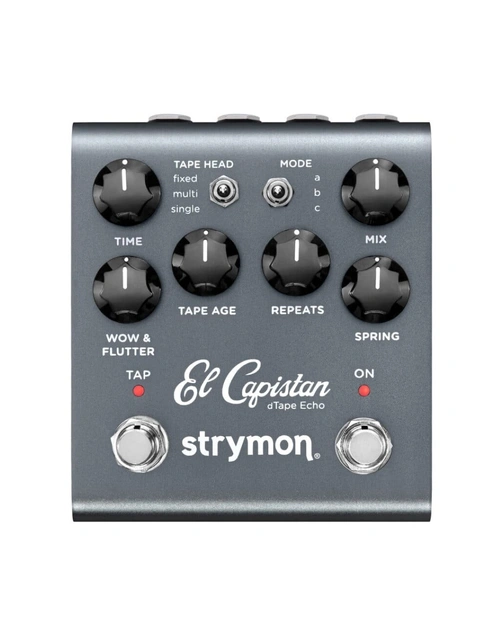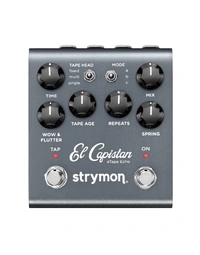The Strymon El Capistan V2 provides three different tape machines in one pedal, each with three unique modes and extensive control over tape quality, machine health and tone shaping. Go from the full-range sonic stability of a fresh-from-the-factory echo machine, to the heavily fluctuating sound of a road-worn unit in need of service. Enjoy the full bodied sound of fresh tape, or dial in the dark, gnarled and vibey qualities of worn out tape; all without any menu-diving required. Strymon's meticulously handcrafted dTape technology and powerful ARM DSP give you a range of tape experiences that would be unattainable with a single traditional tape machine. Plus you get sound on sound looping, all without the headaches of tape machine maintenance and repair.
