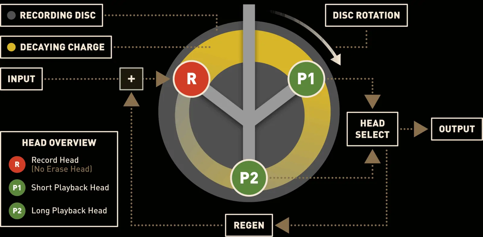 | Heads Control | Select between Short, Long, or Both playback heads for varying echo decay characteristics |