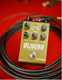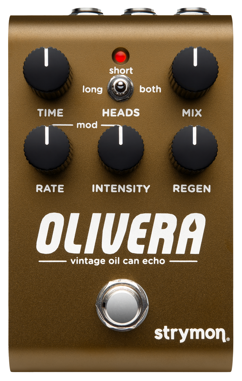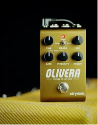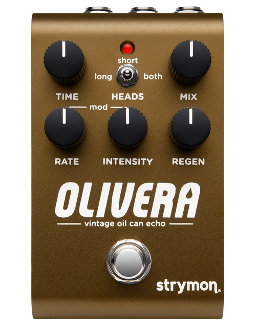 The Strymon Olivera Vintage Oil Can Echo brings the haunting warmth and unpredictable charm of 1950s oil can delays into the modern era. Powered by a brand-new algorithm, Olivera authentically recreates the murky, modulated echoes and self-regenerating ambience that made early Tel-Rey units legendary. Its simplified control set—covering time, rate, intensity, and regeneration—makes shaping syrupy repeats and spring-like textures intuitive. With stereo I/O, MIDI functionality, expression control, and a Class A JFET input, this pedal delivers pristine fidelity while maintaining true analogue touch sensitivity. Finished in a rugged aluminium chassis, Olivera merges vintage character with cutting-edge digital power for players seeking truly distinctive ambience.