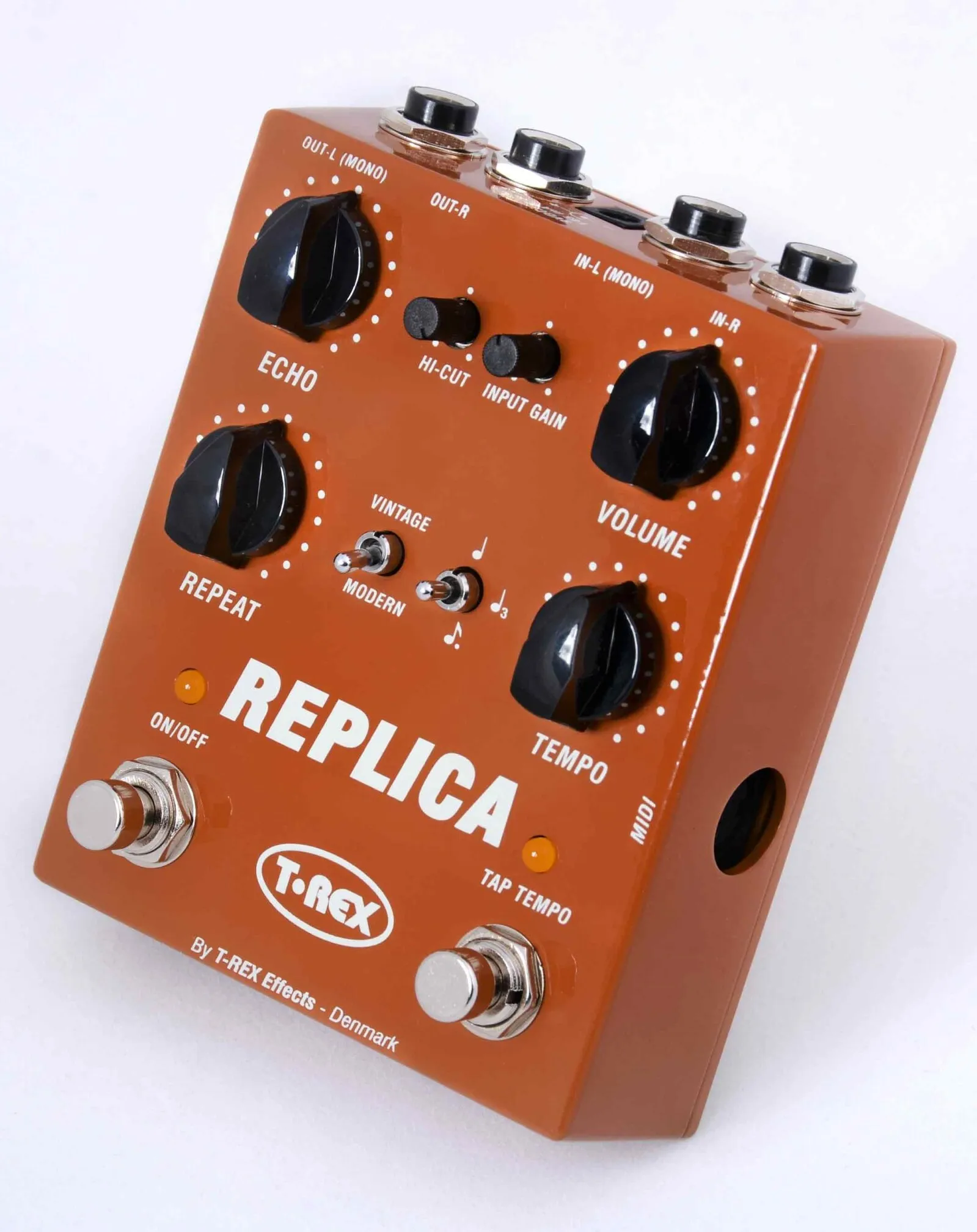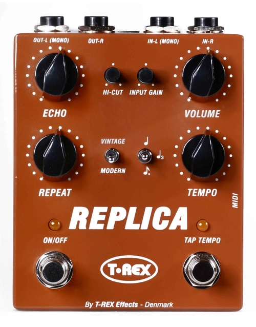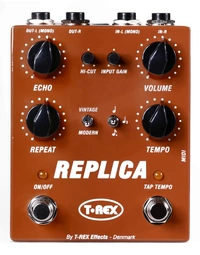 T-Rex proudly reintroduces the legendary Replica Delay, now in the form of the T-Rex Replica Stereo Digital Delay Pedal w/ Tap Tempo. With an upgraded and more powerful engine, this pedal retains its iconic sound and simplicity while reaching new heights of performance.