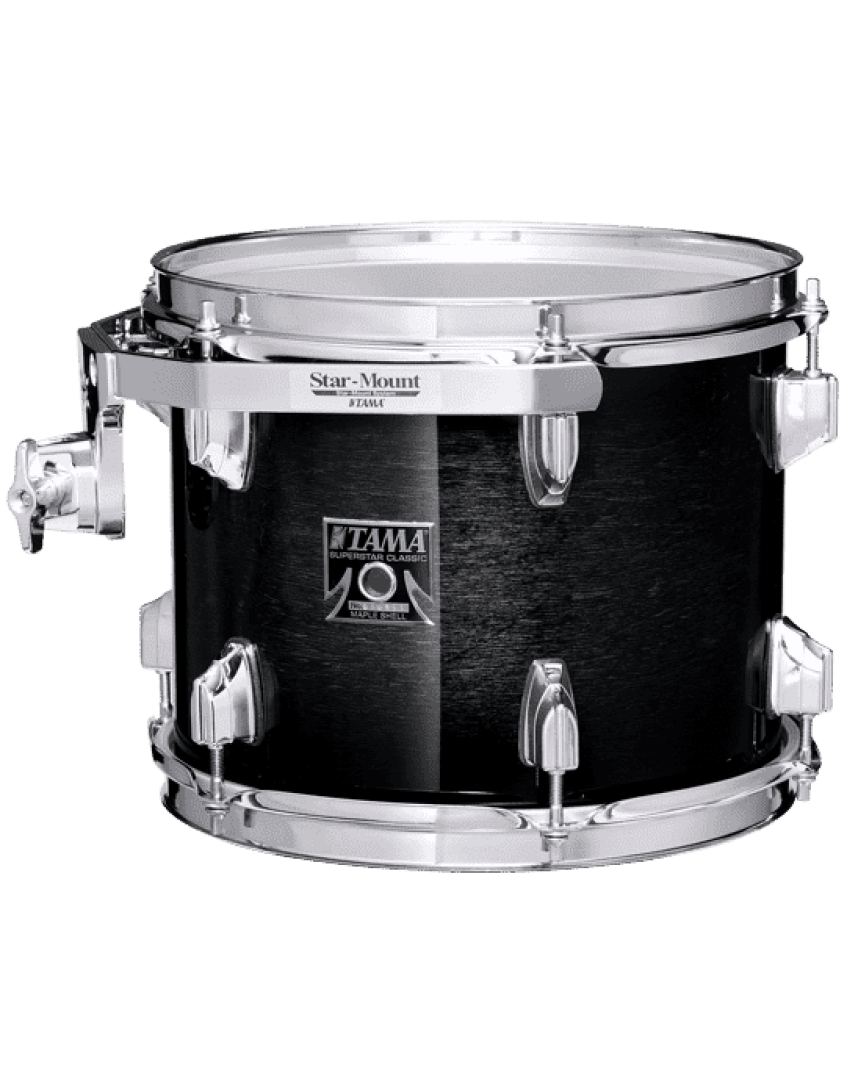 The Tama CL50RS TPB Superstar Classic Maple 5-Piece Drum Kit, finished in Transparent Black Burst, features groundbreaking design, superior build quality, sterling tone, and clear projection. The Superstar Classic range raises the bar for discerning drummers, and remarkably does so at a price that belies its quality. Eclipsing its competitors, the Superstar Classic Maple features TAMA's Star-Mount system, thinner Maple shells, and a bearing edge designed to increase contact between the shell and the head, resulting in incredible resonance. The Classic Maple Tangerine Lacquer Burst features 5mm (6-ply Maple) Toms and Snare, and a 7mm (8-ply Maple) Bass Drum.