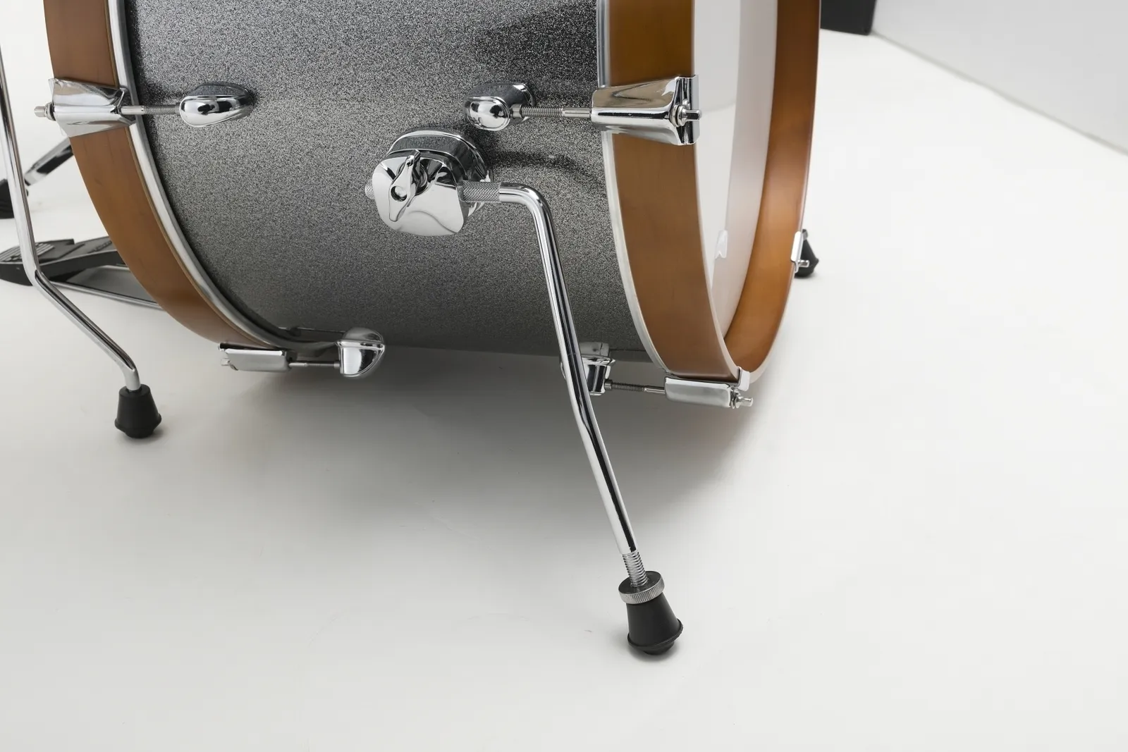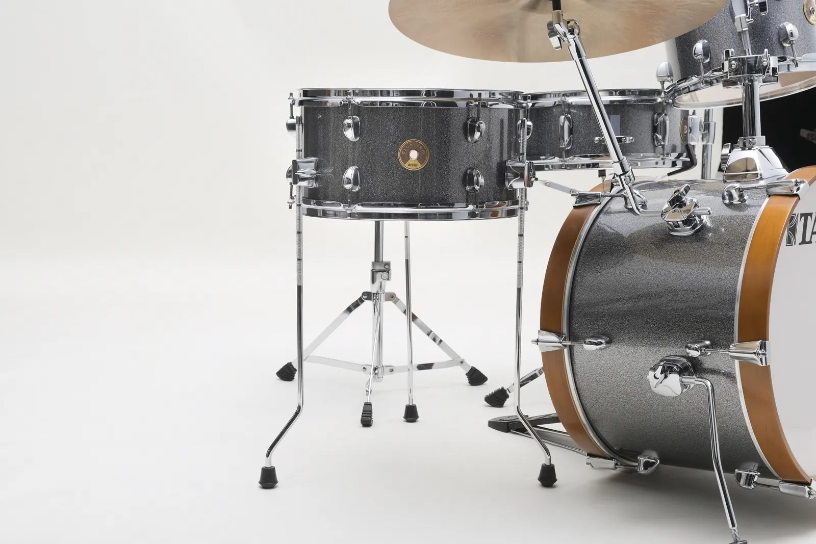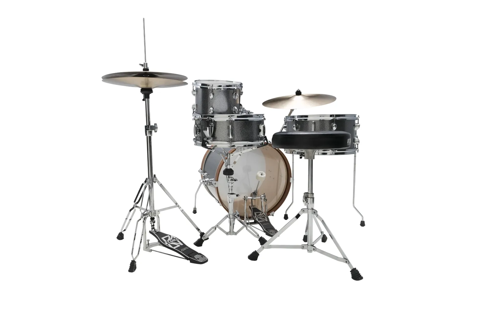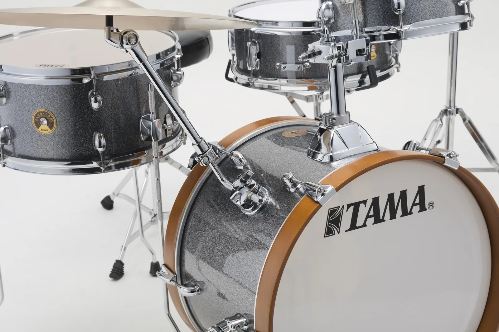 The Tama Club-Jam 4-piece complete kit with 18" Bass Drum in Galaxy Silver is part of the 2019 DRUM KITS release in the Club-Jam Series. We are proud to offer a new compact kit – the "Club-Jam" Kit. This kit adopts some ideas from vintage kits, such as a cymbal holder mounted directly on the bass drum shell and curved bass drum spurs, further setting it apart from the typical compact kit. Focused yet deep sound from Mersawa/ Poplar hybrid shell is just right for small and intimate gigs. Its compact size and configuration make it ideal for working drummers, and it fits comfortably on just about any stage. This product comes in a 4 piece shell kit in a 12"x18"Bass Drum, 7"x10"Tom Tom, 7"x14"Floor Tom, 5"x13"SD, CACLJ Cymbal Holder, Single Tom Holder, Hi-Hat Stand, Drum Pedal, Snare Stand & Drum Throne configuration. Designed with 7mm, 8ply Mersawa / Poplar hybrid shell with a Bass Drum Mounted Cymbal Holder, all in a Compact sizes for easy transport, and a Bass Drum Wood Hoop , Available for transportation is the DSS48LJ Bag Set Sold Separately.