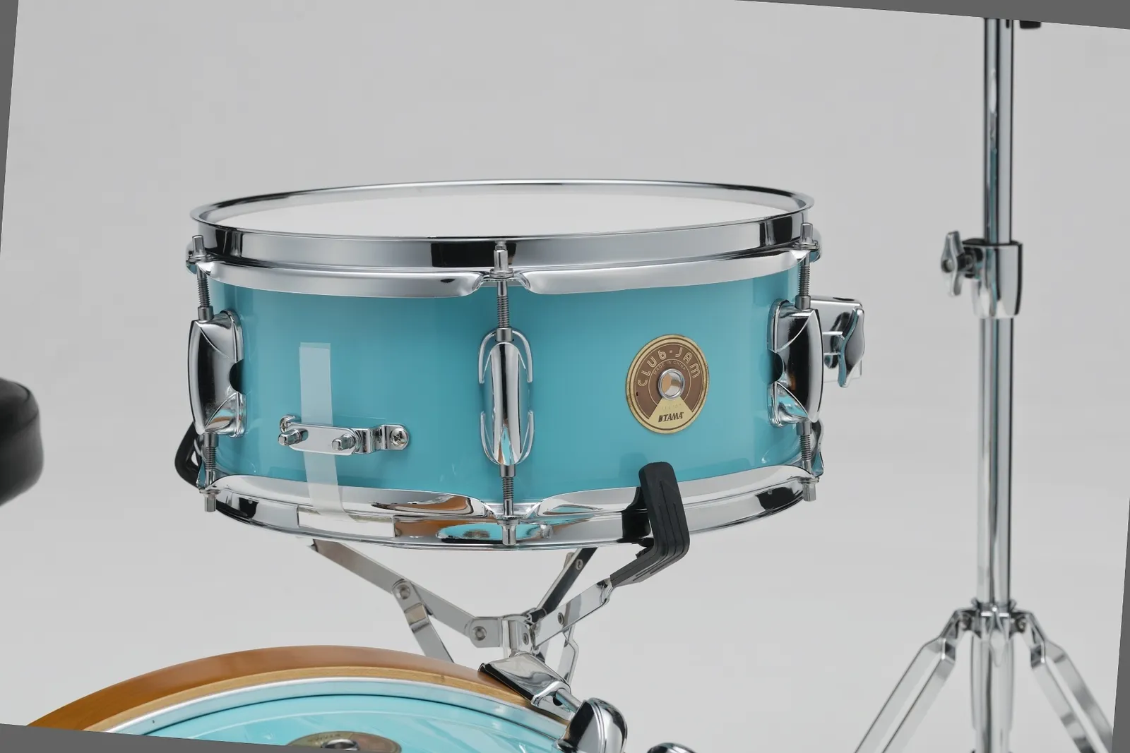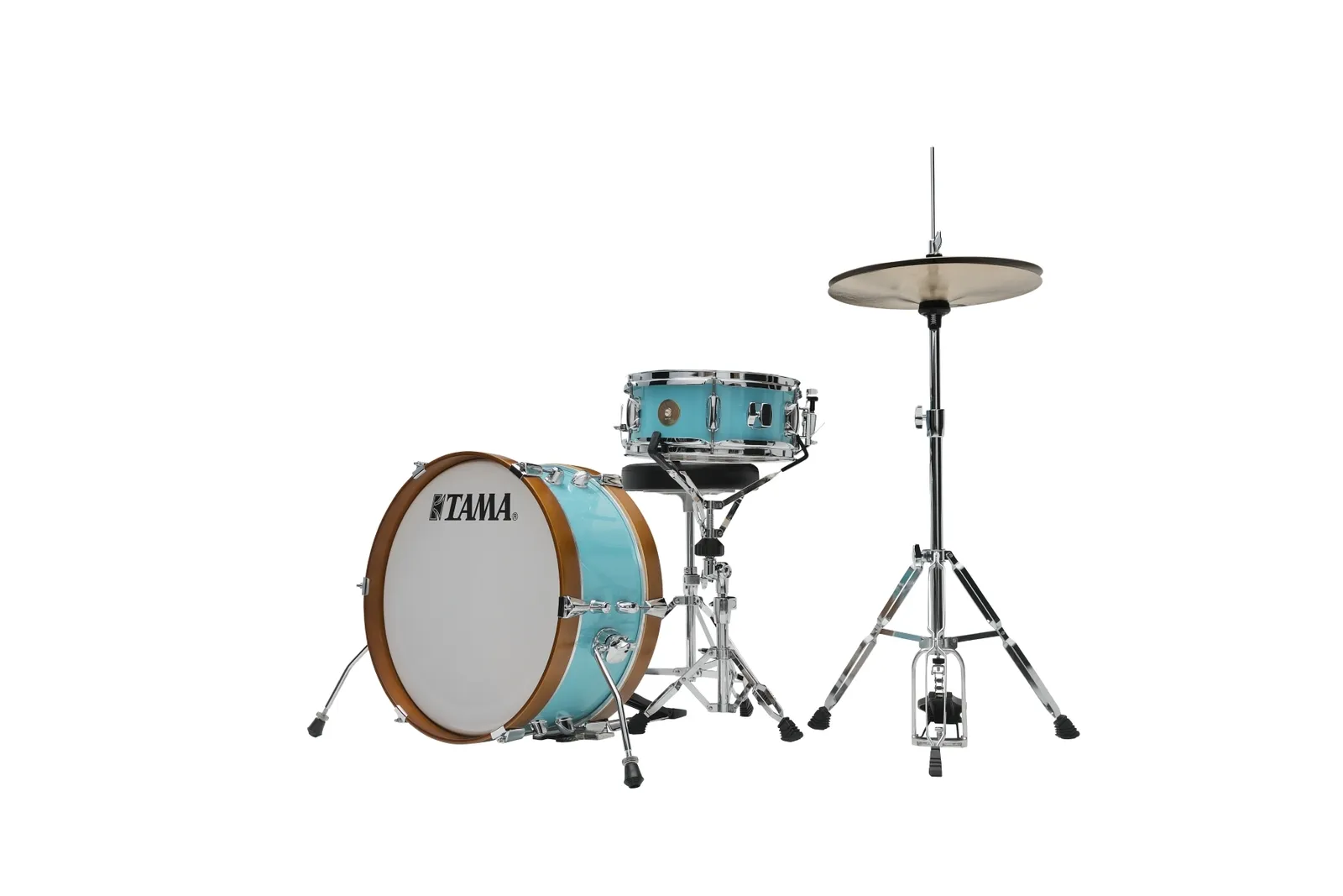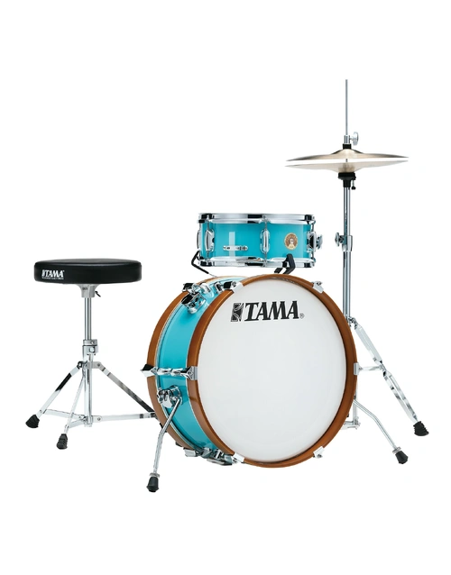 The Tama Club-Jam Mini 2-piece complete kit with 18" Bass Drum in Aqua Blue is part of the 2019 DRUM KITS release in the Club-Jam Mini Series. The simple and sweet Tama Club-Jam Mini kit is just a kick and snare. Its clear yet deep sound from the Mersawa / Poplar hybrid shell is just right for those small and intimate gigs. Its' compact size and configuration fit comfortably at any small venue or street show. If you need to configure it as a regular drum kit, an add-on pack is also available (sold separately) which includes a 10" x7" tom tom with attachment and a 14" x 7" floor tom. Bag sets, as well as a mounted cymbal holder, are also available separately.
