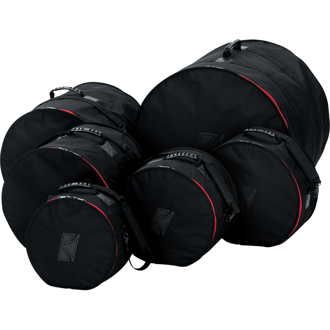 The TAMA Standard Drum Bag Set features bags with 10mm of inner cushion and 600 denier waterproof surfaces, which securely protect your drums during transport. The bags are also equipped with a comfortable carrying strap for easy portability. There are various pre-configured sets available, to cater to different setups. While the bags do feature our iconic red zipper and simple "T" logo, they work great for any other drum brands' products as well.