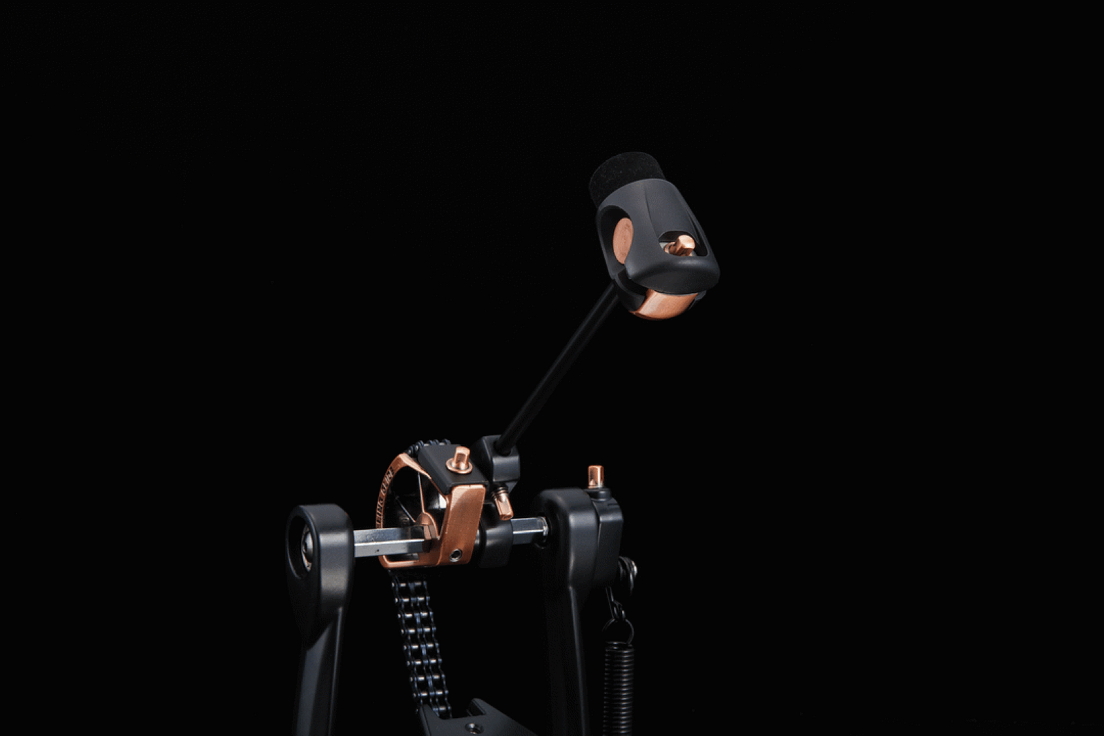 Introducing the Limited Edition Tama HP310LBC Speed Cobra 310 Single Kick Pedal, with Matte Black finish and Brushed Copper parts. Experience professional quality and superb feel with a streamlined version of the Speed Cobra 910 series pedal. The all matte black finish with brushed copper parts delivers a sleek and stealthy look. Featuring a long footboard, recessed setting, LiteSprocket, double chain drive, newly designed hinge, and beater angle and spring tension adjustments, this pedal is perfect for everyone from beginner to professional.