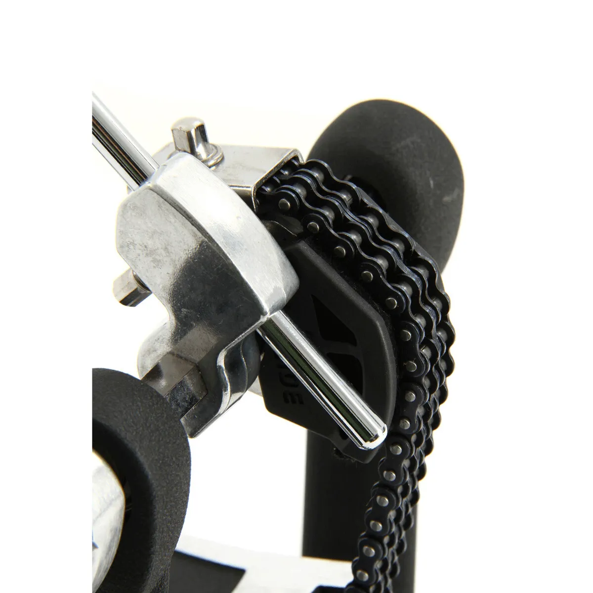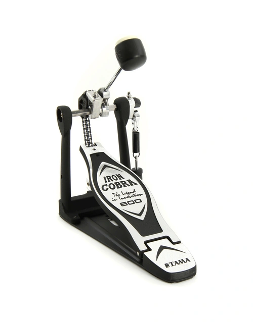 The newest addition to the Iron Cobra series, the Iron Cobra 600's most unique feature is a reversible cam called the "Duo Glide Cam." A simple adjustment allows fast changes between a true round "Rolling Glide" sprocket and an offset "Power Glide" sprocket. Drummers can choose the appropriate cam based on playing style, musical environment, and personal preference. In addition, the Iron Cobra 600 features a newly designed hinge for precise footboard action, and ball bearing equipped "Speedo-Ring" rocker cam.