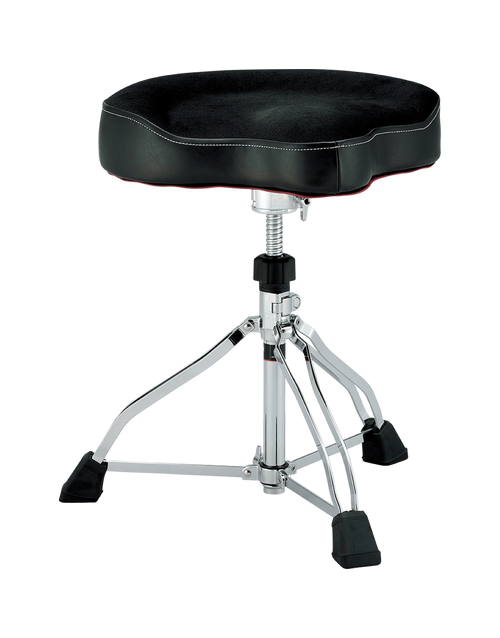 What determines the first impression of a drum throne is the hardness of the seat. In the moment a drummer sits down on the throne, they understand whether it's a suitable fit or not. The final decision is very simple, but it depends on many complicated factors. After detailed investigations into shape, material, stretch of cloth, and method of sewing, Tama released the Glide Rider drum throne—it's an ideal balance between softness and hardness Tama hadn't tried before this.