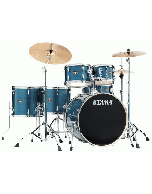 The Hairline Blue finish of the Tama IP62H6W Imperialstar Poplar 6-Piece Drum Kit is a stunning choice for any drummer. This kit offers a warm tone with medium attack thanks to its 100% Poplar shells and TAMA precision bearing edges. The kit also comes with quality hardware like the Iron Cobra 200 Drum Pedal and Omnisphere Tom Holder System for easy positioning and great sound.