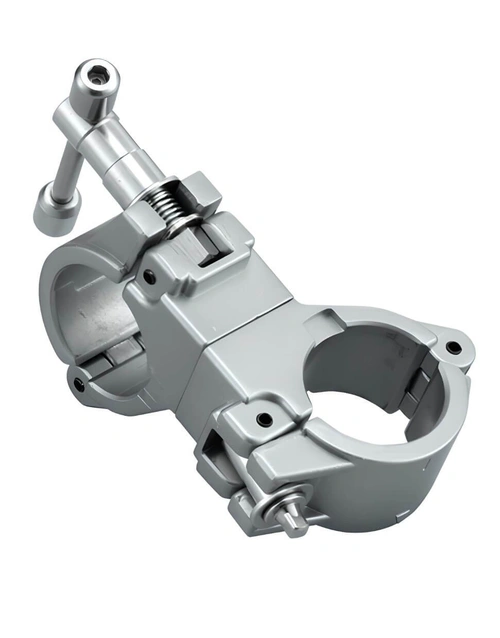 The Tama J30TS Cross Joint Bracket is a 90 degree perpendicular pipe clamp that allows horizontal and vertical pipes to be set at an equal height.
