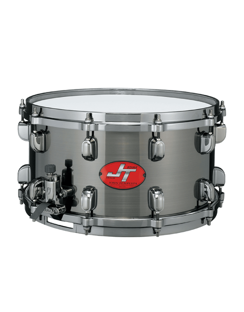 The pairing of a 42-strand snappy snare with a deep 7" brass shell gives John's model an intense and powerful sound that has an unmatched depth of tone. With black nickel shell hardware complementing the brushed black nickel finish, the JT147 looks as menacing and dangerous as it sounds.