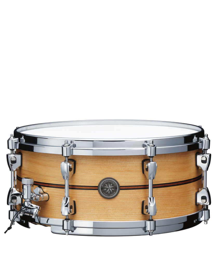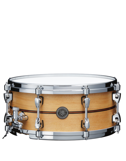 The Tama PSP146E SCC Starphonic 14" x 6" Snare Drum in Satin Natural Spruce brings a fresh, refined voice to your setup with its unique 8mm, 9-ply spruce shell. Known for its use in acoustic guitars, spruce offers a warm tone with pleasing high-mid clarity. Paired with Tama’s Grooved Hoops and 8-lug design, this snare delivers sharp, focused attack and controlled projection while maintaining the natural musicality of the shell. Additional features include the Super Sensitive Hi-Carbon snare wires, Freedom Lugs with Claw Hooks, and a Linear-Drive Strainer for smooth, consistent performance. The elegant centre stripe adds a touch of visual class.