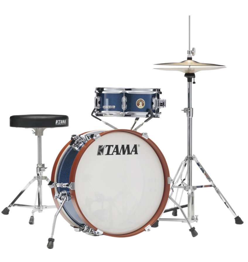 The Tama LJK28H4 ISP Club-JAM Mini 2-Piece Drum Kit in Indigo Sparkle is a compact, no-fuss setup designed for portability and tone. With just an 18" x 7" bass drum and 12" x 5" snare, this kit delivers a surprisingly full, punchy sound from its 8mm, 9-ply poplar shells—ideal for small venues, busking, or quick jam sessions. Its ultra-compact footprint makes it easy to transport and set up, while the wood hoop on the kick drum adds vintage flair. Includes hi-hat stand, snare stand, bass drum pedal, and drum throne. Bags and cymbal holder sold separately.