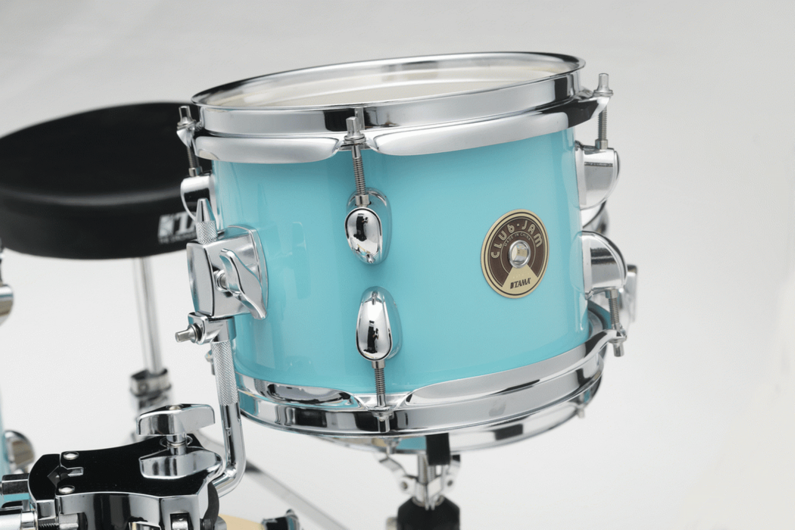 The TAMA LJK44H4 AQB Club-JAM Flyer Kit, finished in Aqua Blue, is the ultimate compact-sized drum kit. This kit is ultra-portable, and perfect for any small venue, rehearsal space, and even street shows.