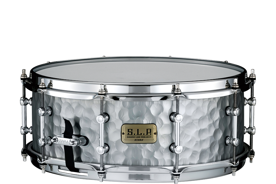 This 5.5" x 14" snare is crafted of 1.2mm hammered steel shell. The hammered process adds tonal complexity, depth, and dryness to the sounds typically associated with TAMA's steel shell, which are bright and penetrating. The more complex tones are generated from the way sound waves asymmetrically reflect off the hammered shell texture.