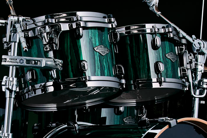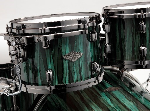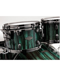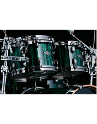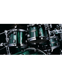 The Tama Starclassic Performer Limited Edition in Green Grove Aurora delivers the series’ signature maple/birch clarity with a visual aesthetic that’s truly one of a kind. Every shell is individually hand-painted, layering multiple shades of green to produce a forest-like depth and movement across the finish. Paired with black nickel hardware, the kit projects a dark, modern presence on any stage.