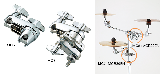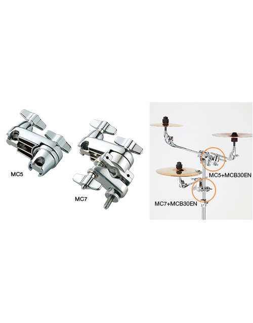 A clamp for connecting parts with diameters of between 9mm to 12mm together. By combining a boom arm (MCB30EN, MCB45EN) and an L-rod (LLT, LCB, LCYE), this clamp can be used to attach a variety of parts onto a simple boom arm.