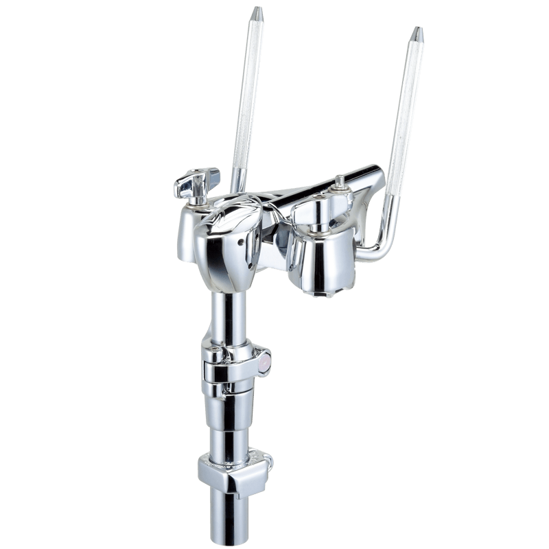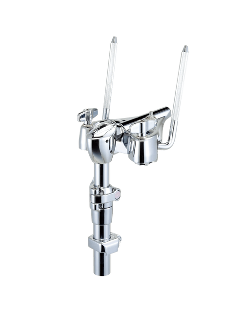 This tom holder expands setting flexibility by employing a sliding connector unit that moves back and forth without restriction up to 50mm (2"). Now a player simply loosens a bolt in order to easily adjust the proximity of the tom-toms. The MTH909 can be set up without any holes in the bass drum being necessary.