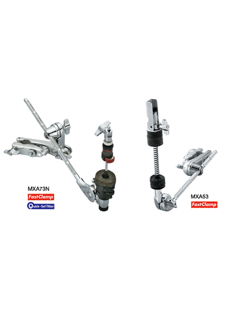 Simply designed closed hi-hat attachment that allows for two different settings by turning a lever. Attachable to stands from 15.9mm to 28.6mm in diameter. Great for double bass or double pedal players. And, you can also set up half open hi-hat cymbals by adjusting the spring.