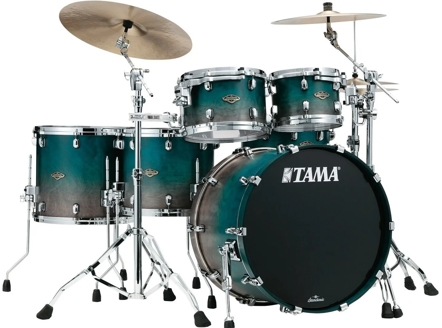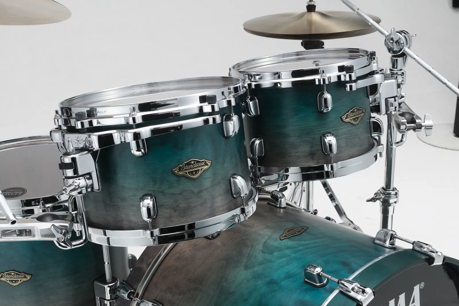 The Tama Starclassic Walnut/Birch 5-piece Shell Pack with 22" Bass Drum in Satin Sapphire Fade is part of the 2019 DRUM KITS release in the Starclassic Walnut/Birch Series. Exploring limitless possibilities, Tama's result in the wake of countless experimentation came in the form of the Hybrid Shell Walnut/Birch: combining the superior quality warmth and mid to low frequency tone of the increasingly popular and truly unique Walnut, with the well-defined and uncompromisingly solid attack of Birch. Whilst Tama successfully preserved their unique sonic trademarks, the characteristics of both Walnut and Birch blend to persuade a very focused sound that would define itself with great distinction within a musical ensemble; married with controlled sustain and clarity; all sealed with an undeniably palpable feeling of warmth and resonance when performed.