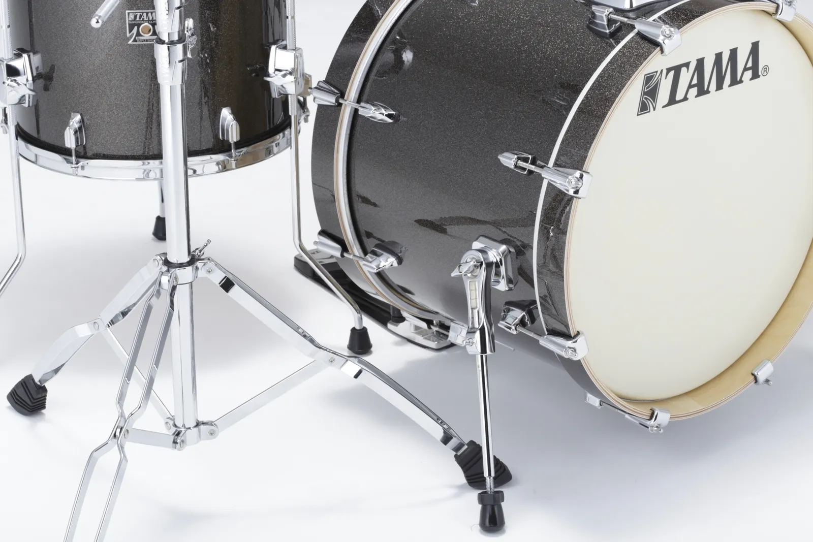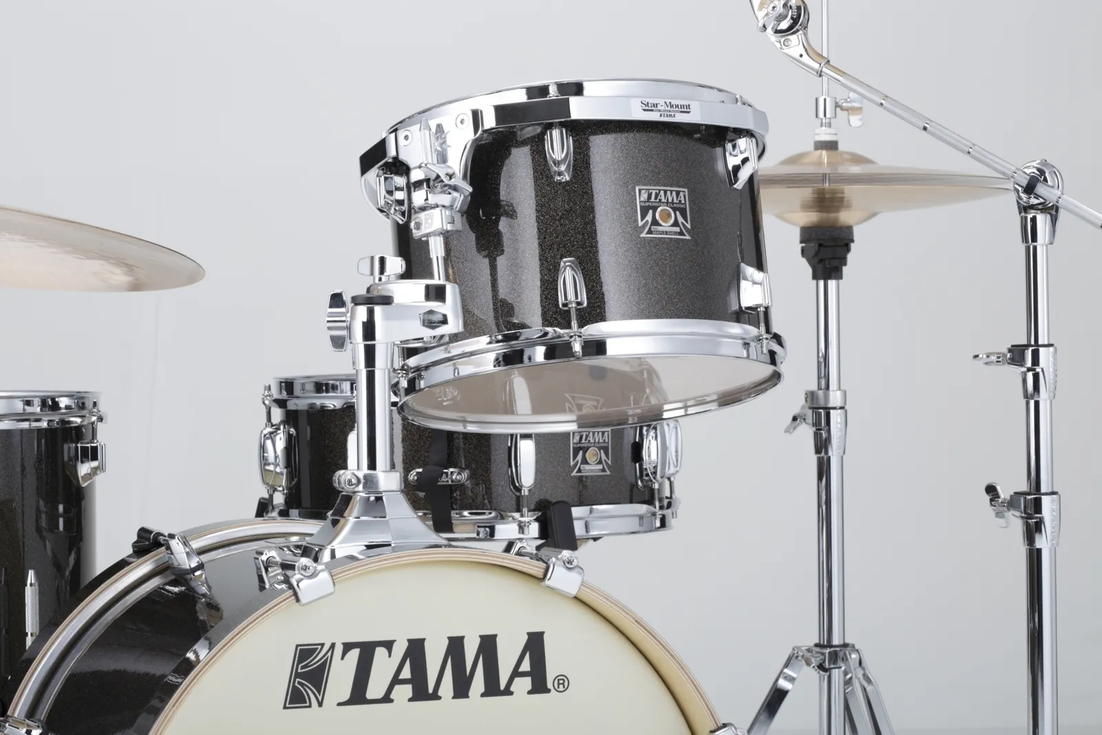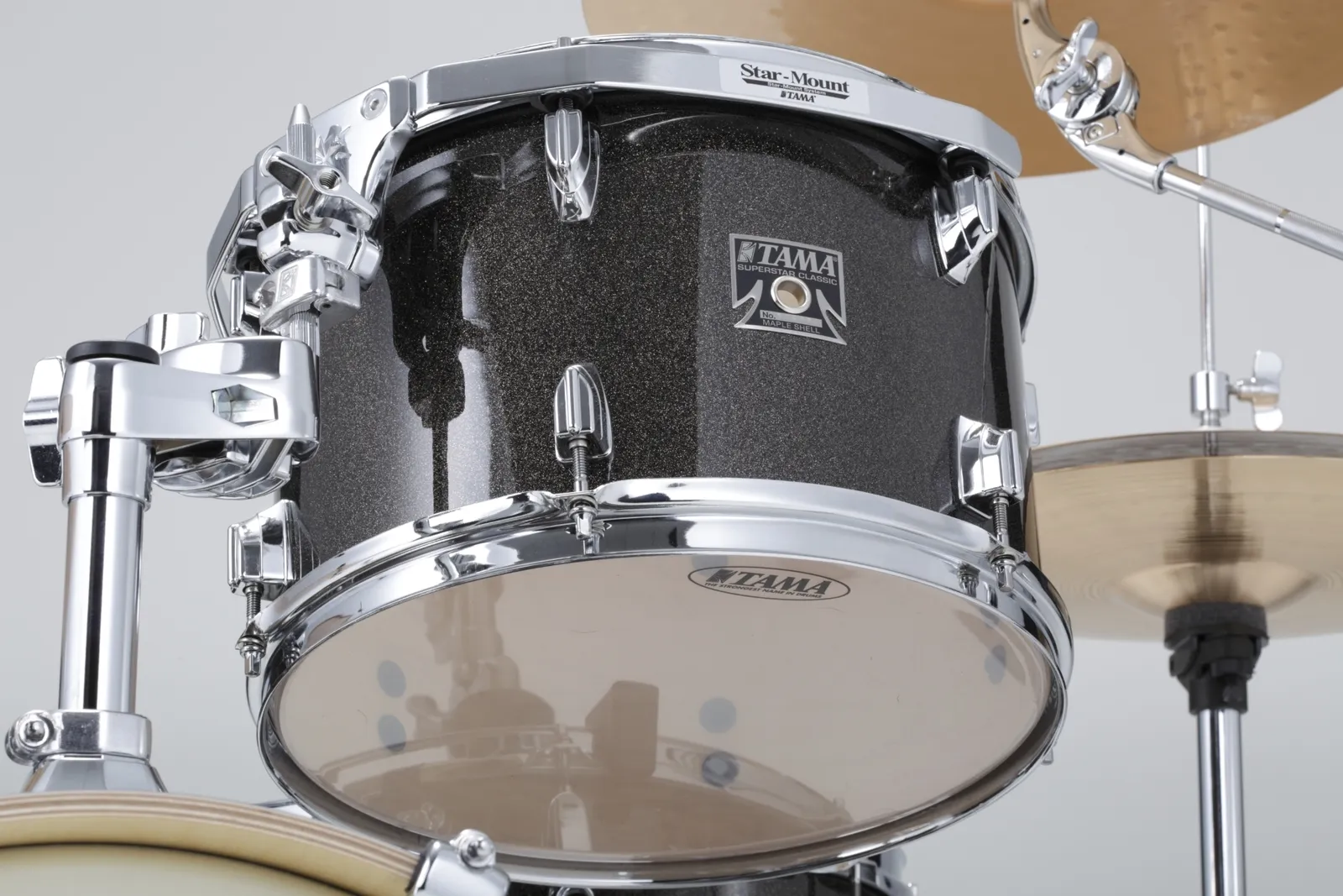 The Tama SuperStar Classic 4-Piece Shell Pack with 18" Bass Drum in Midnight Gold Sparkle is part of the 2019 DRUM KITS release in the SuperStar Classic Series. For more than forty years, the SuperStar name has stood for groundbreaking design, superior build quality, sterling tone, and clear projection. SuperStar Classic once again upholds tradition by raising the bar for discerning drummers—and remarkably—does it while also lowering the price. Drawing on SuperStar of the past, its classic Tama T-shape badge and streamlined low-mass single lugs point to the simpler state of art of the 70's, while the ingenious Star-Mount system and new thinner gauge 100% Maple shells eclipse anything in its class This product comes in a 4 piece shell kit in a 14"x18"Bass Drum, 8"x12"Tom Tom, 14"x14"Floor Tom, 5"x14"SD & MTH900B Single Tom Holder configuration. This kit comes with a SM5W Hardware pack. Designed with All-Maple Shells, Tom Tom and Floor Tom/SD: 6ply, 5mm / Bass Drum: 8ply, 7mm with a Star-Mount System, Triple Flanged Hoop, and Low-Mass Single Lugs with Claw Hooks w/Rubber Spacers. The Kit has Power Craft II drum heads and Bass Drum Lifter.
