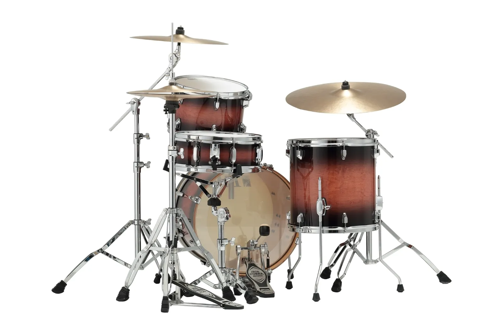 The Tama SuperStar Classic 4-Piece Shell Pack with 18" Bass Drum in Mahogany Burst is part of the 2019 DRUM KITS release in the SuperStar Classic Series. For more than forty years, the SuperStar name has stood for groundbreaking design, superior build quality, sterling tone, and clear projection. SuperStar Classic once again upholds tradition by raising the bar for discerning drummers—and remarkably—does it while also lowering the price. Drawing on SuperStar of the past, its classic Tama T-shape badge and streamlined low-mass single lugs point to the simpler state of art of the 70's, while the ingenious Star-Mount system and new thinner gauge 100% Maple shells eclipse anything in its class This product comes in a 4 piece shell kit in a 14"x18"Bass Drum, 8"x12"Tom Tom, 14"x14"Floor Tom, 5"x14"SD & MTH900B Single Tom Holder configuration. This kit comes with a SM5W Hardware pack. Designed with All-Maple Shells, Tom Tom and Floor Tom/SD: 6ply, 5mm / Bass Drum: 8ply, 7mm with a Star-Mount System, Triple Flanged Hoop, and Low-Mass Single Lugs with Claw Hooks w/Rubber Spacers. The Kit has Power Craft II drum heads and Bass Drum Lifter.
